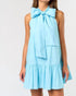 Introducing the Lenora Sleeveless Ribbon Mini Dress by Lalavon, a delightful choice for playful, chic style in spring's warmth. This sleeveless dress, in a solid blue hue, features a mockneck and a charming front bow detail, perfect for baby showers and summer occasions. Its shirt silhouette offers a flattering fit, while the mini length adds a touch of youthful elegance. Ideal for warm weather, this dress combines femininity and style seamlessly.