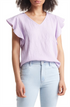 Large Caslon V-Neck Top with Ruffle Sleeves in Purple Bloom