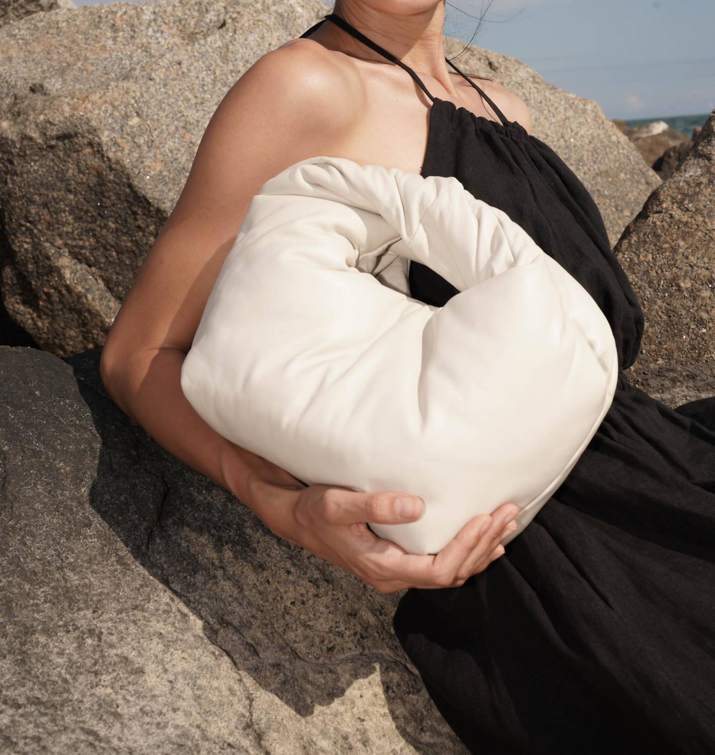 You can never have too many handbags and this hobo bag is no exception. The Women's Mello Top Handle Handbag by Lemiz is a statement piece, crafted with a puffy, cloud-like design in white lambskin. Its marshmallow-inspired shape not only highlights the exceptional quality of the leather but also provides a plush sanctuary for your essentials. With dimensions of 9.25" in height, 11.5" in width, and 8.5" in depth, it offers a spacious yet chic interior. This bag seamlessly combines practicality with tactile beauty, making it a luxurious addition to any wardrobe.