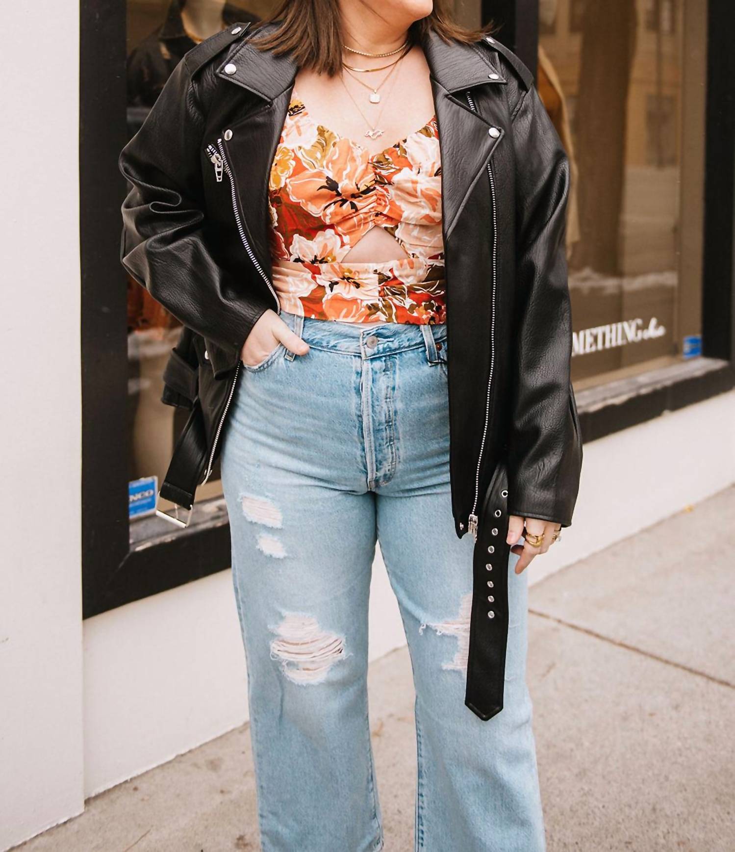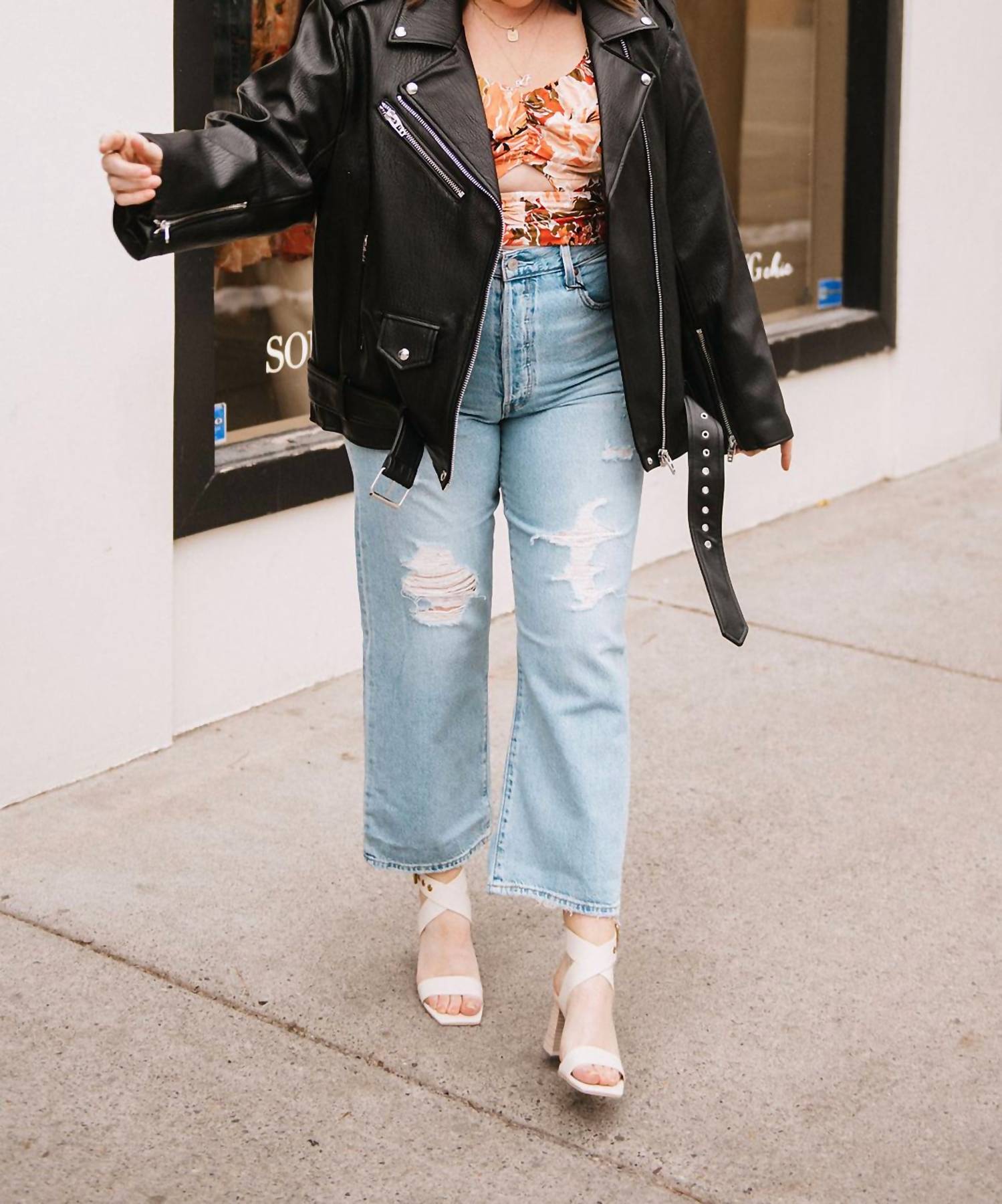 We especially love this cropped jean with a cute pair of slides or sandals. Discover the Ribcage Straight Ankle Jeans by Levi's, an iconic piece with a super high rise and classic straight leg. Crafted from 79% Cotton and 21% Lyocell, these jeans offer a destructed finish and slim fit through the hips. They feature a signature leather patch at the back waist and a button fly for easy closure. With a measured rise of 12 inches, a 27-inch inseam, and a 17-inch leg opening, these jeans perfectly embody timeless style and comfort.