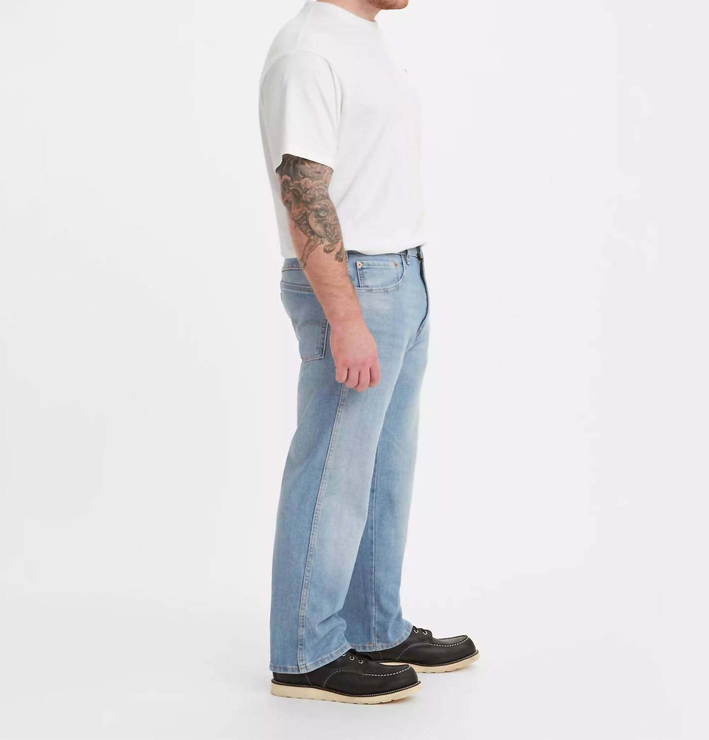 Discover the Levi's Men's Western Fit It's 5'O Clock Stackable Straight-Leg Light Wash Jean, crafted for style and durability. Featuring a mid-rise and an original fit, these jeans are made with 74% cotton, 13% polyester, 12% PMDE, and 1% elastane for comfort and flexibility. The ergonomic pockets and zip closure complete this light blue solid denim piece. Care instructions include machine wash and tumble dry, ensuring easy maintenance. Measurements from size 32 include an 11.5" front rise, a knee width of 18.25", and a leg opening of 16.75".