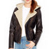 Notched collar with attached hood|Zipper closure at front|Long sleeves with zipper detail|Three zip pockets at front|Fake leather styling|Sherpa fleece lining