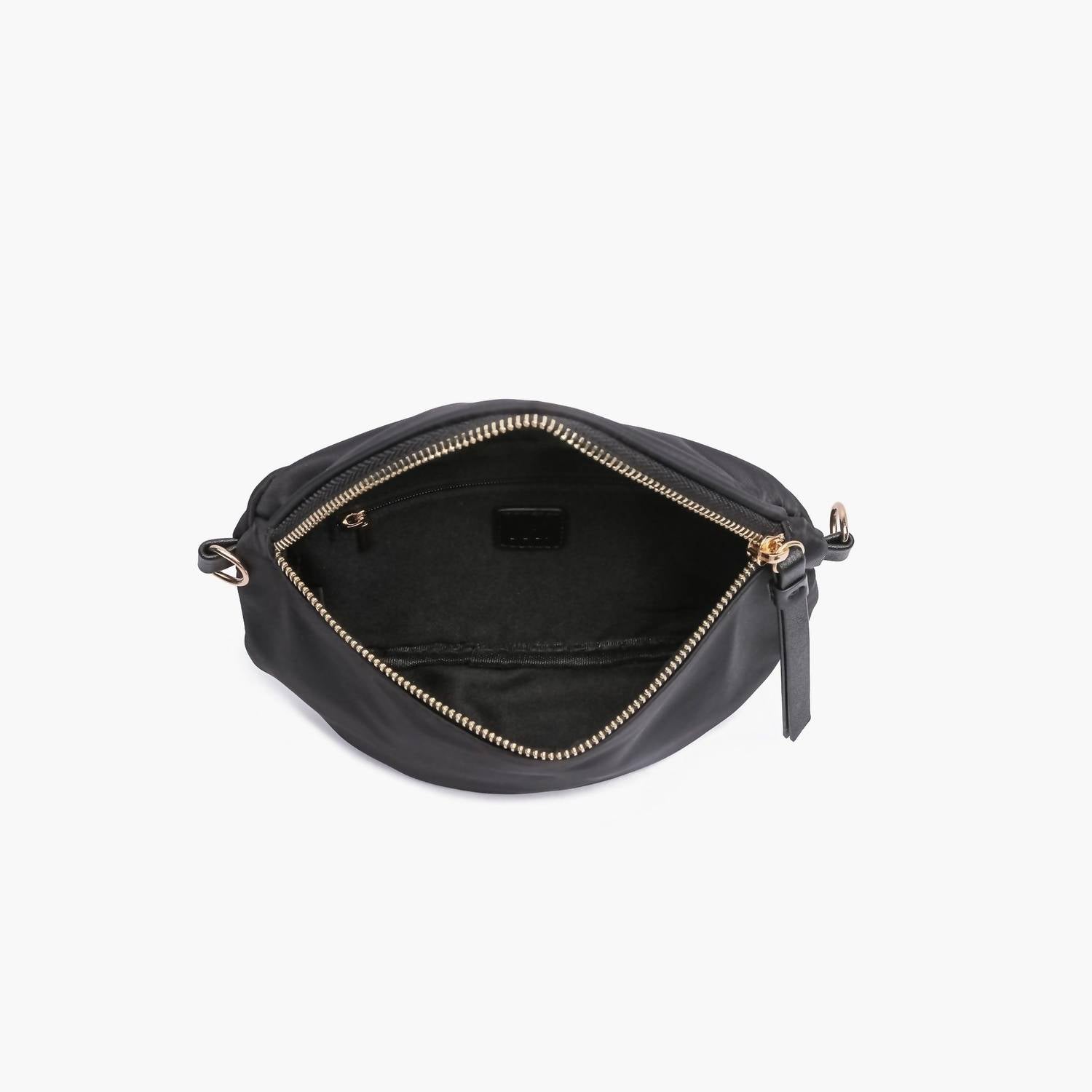 The Women's Out Of Norm Fanny Pack by Like Dreams offers a modern twist on a classic silhouette, crafted from premium nylon in sleek black with elegant gold hardware details. It features convertible wearing options, allowing you to style it as a crossbody or a traditional fanny pack with an adjustable and detachable twill webbing strap. Dimensions are thoughtfully designed at 8.75" wide, 5.25" high, and 3" deep, ensuring ample room for essentials while maintaining a sleek profile. A detachable zipper pouch adds extra organization, and the sleek leather zipper tassels provide an elegant finishing touch.