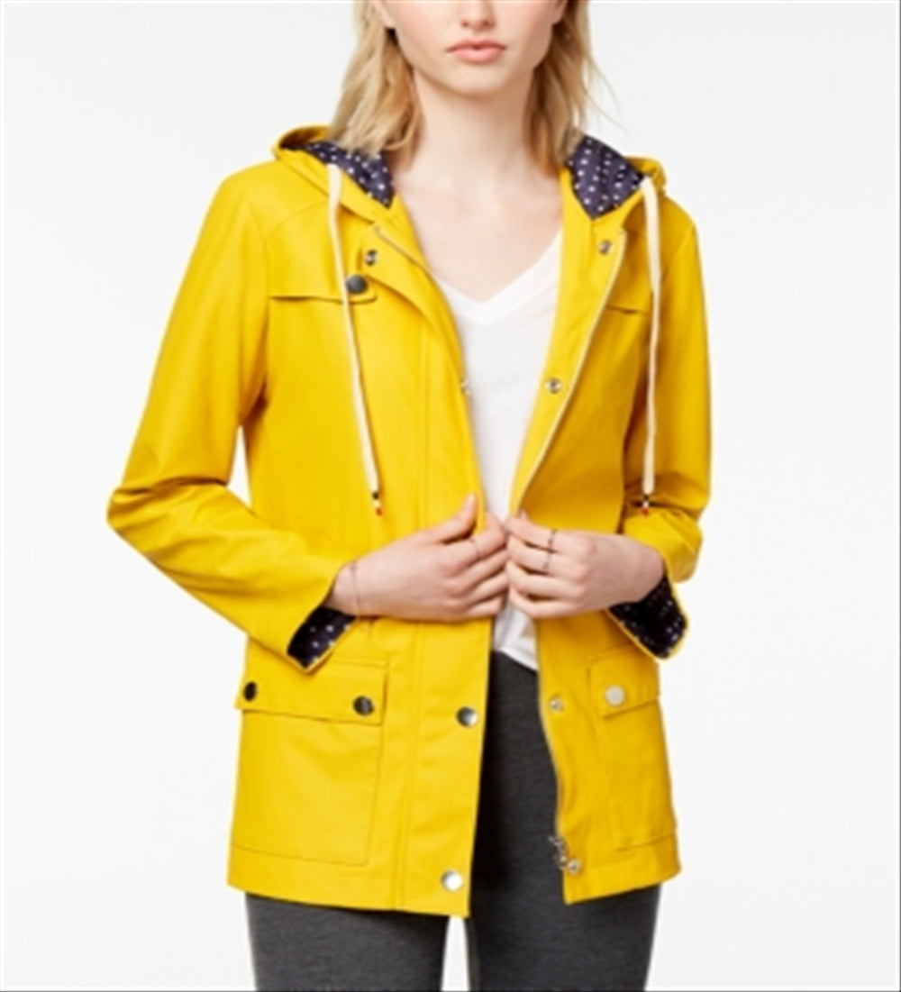 Maison Jules Women's Hooded Raincoat Yellow Size Large