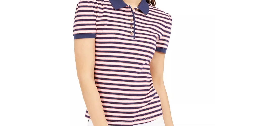 Polo neckline|Cotton/spandex|Machine washable|Imported