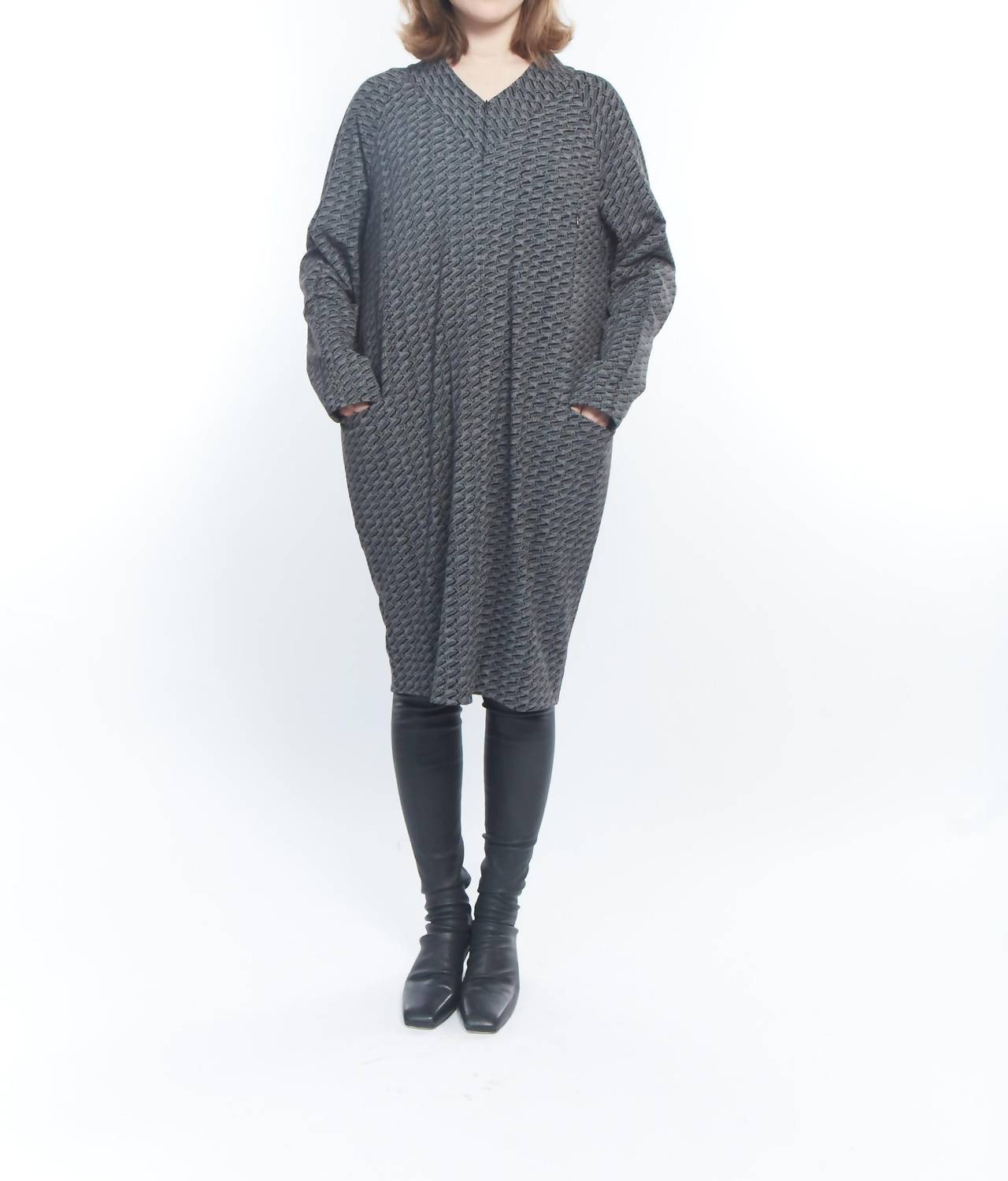 The kind of easy and flattering dress you'll be reaching for all season long. Discover the Alabaster V-neck Dress by Matthildur, a standout from the Jersey Collection perfect for unmatched comfort. With long sleeves crafted from cotton, this mini dress features a unique Black Zen Print for a chic patterned style. The addition of essential pockets and a pull-on closure ensure functionality and ease of wear. For effortless maintenance, machine wash and tumble dry as needed.