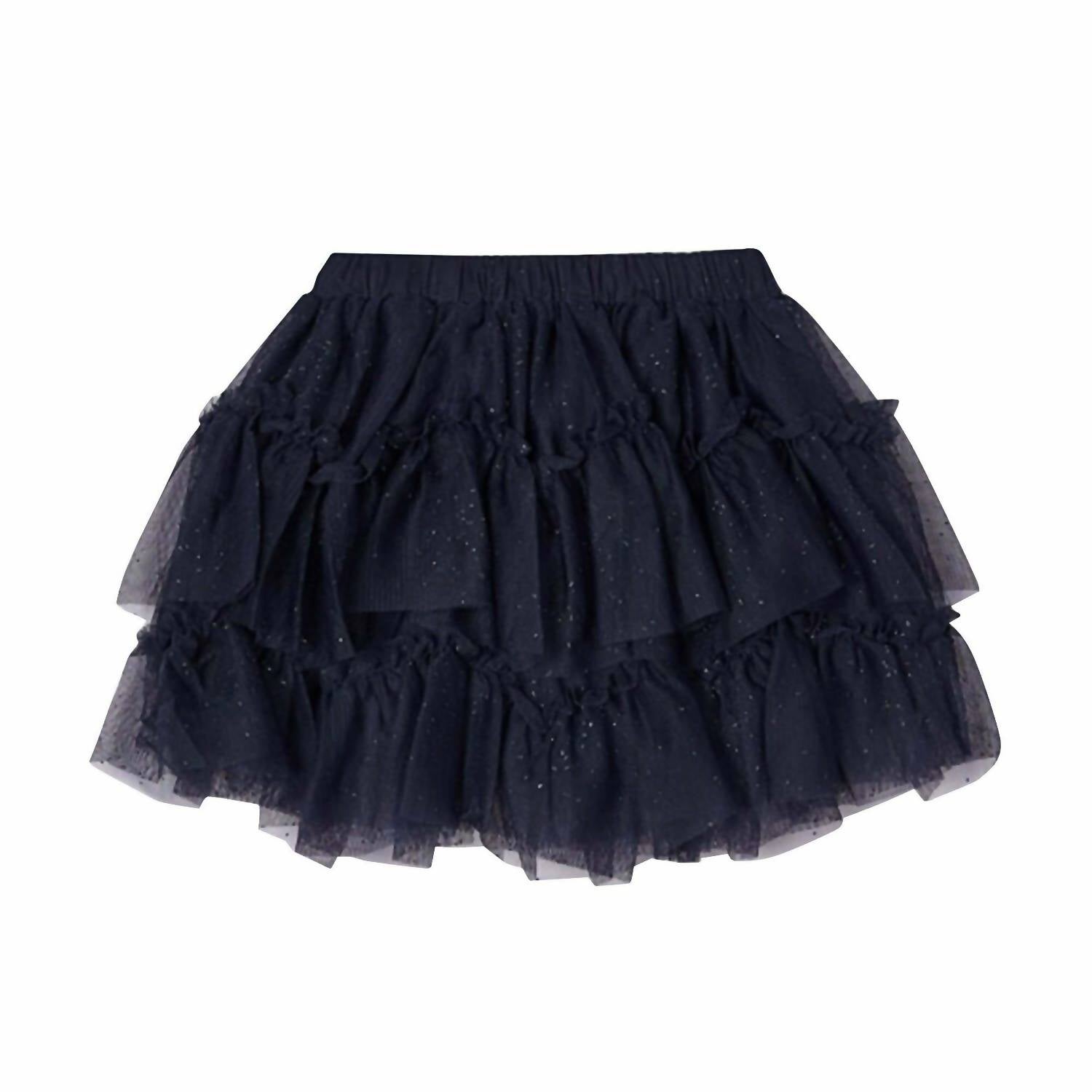 Elevate your little one's summer wardrobe with the Mayoral Girl's Tiered Tutu Skirt in navy. This 90s fashion-inspired skirt is made from 100% polyester and boasts an allover sparkling glitter design that captures the light beautifully. With an elasticated waistband, it ensures a comfortable fit for any vacation outing. The addition of a 100% cotton lining enhances its comfort factor, while care instructions suggest a machine wash for easy maintenance.