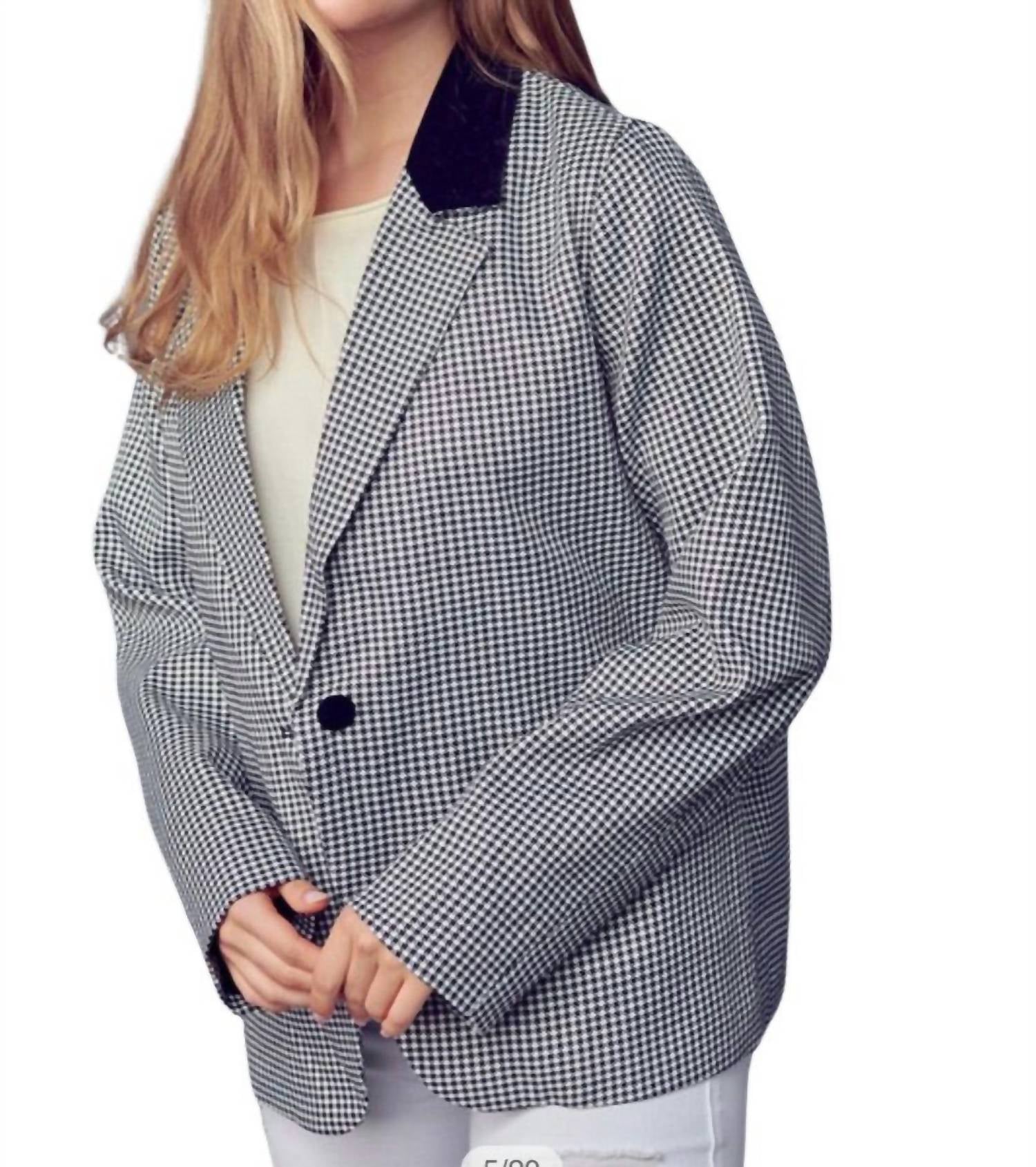 &Merci - Contrast Lapel Collar Houndstooth Blazer