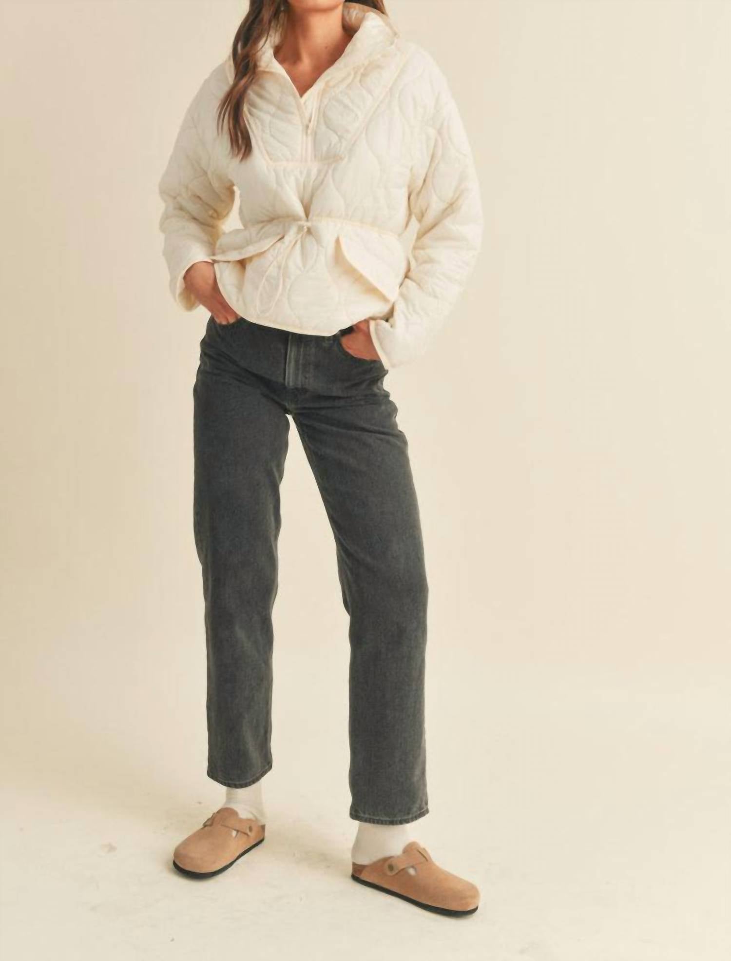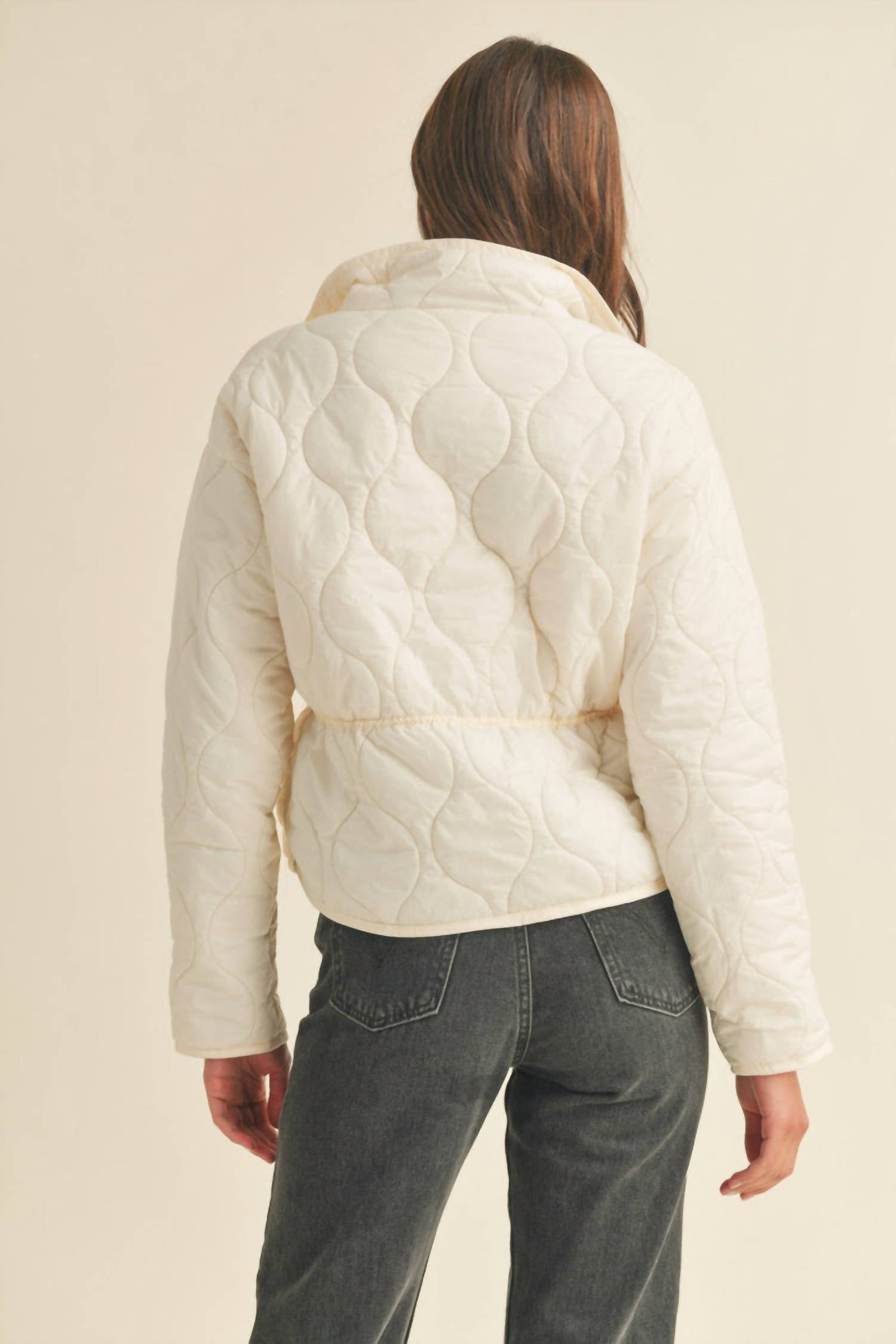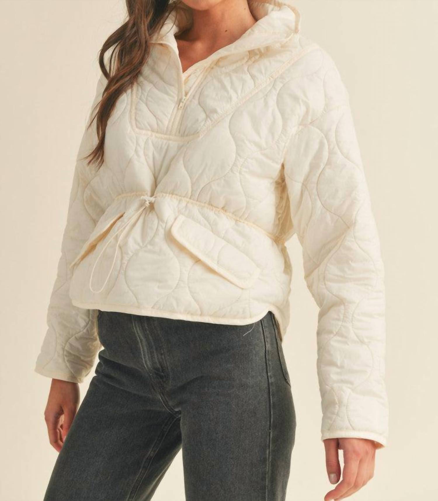 Cooler temps means cute puffer jackets and this one is a fan favorite. The Quilted Puffer Pullover by &merci is a chic winter staple in a creamy shade, perfect for your New Year's Eve travel ensemble. Crafted from faux fur, this solid pattern pullover offers long sleeves and a collared half-zip neckline for added warmth and style. It features a cinched waist with an adjustable drawstring for a customizable fit and convenient front flap pockets. Closure: Zip closure. Care: Machine wash.