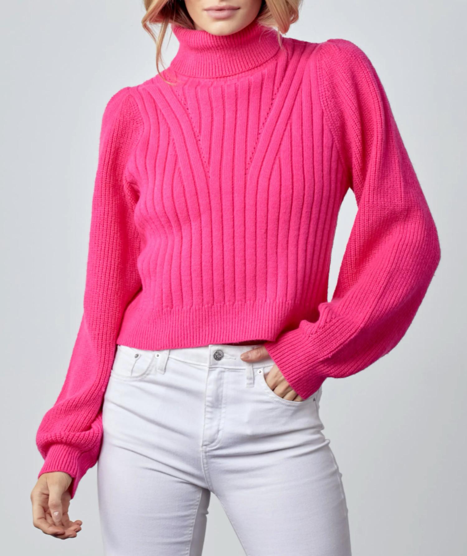 A classic staple that every closet needs.Featuring slightly cropped and relaxed silhouette. It has a chic voluminous shoulder with pointelle knit details. Fabrication: 52% Acrylic, 25% Nylon, 23% PolyesterCare: Hand wash cold, dry flatStandard Clothing Sizing