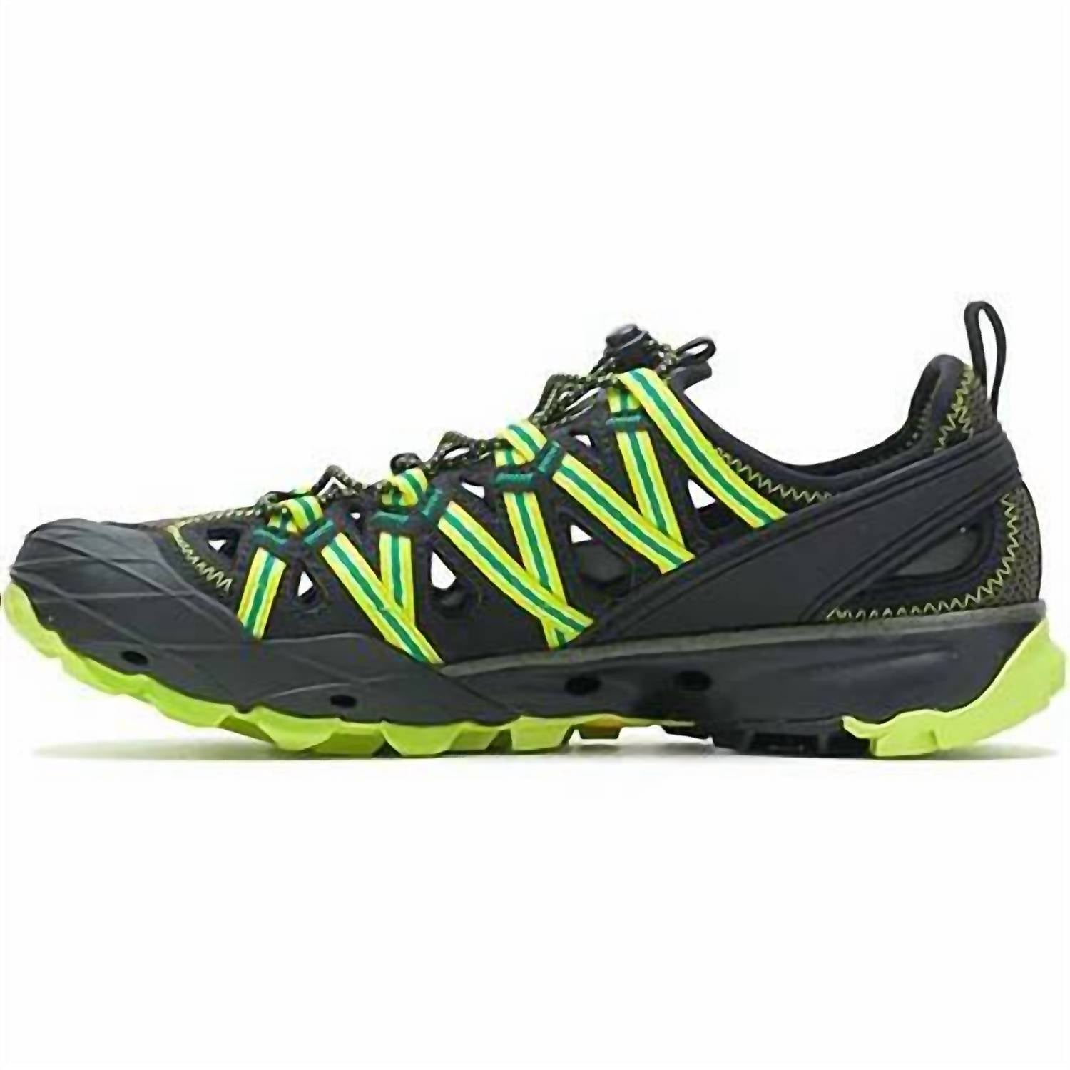 Features include a water-friendly synthetic, mesh, and webbing upper. Integrated rubber toe bumper for complete toe coverage and protection. Integrated webbing loops. Hyperlock molded TPU heel counter. Hydramorph midsole channels and ports for water evacuation and air ventilation. Kinetic Fit BASE removable contoured EVA insole with water-friendly top cover. Compression-molded EVA midsole. Vibram Megagrip. 5mm lug depth. Weight: 803g.