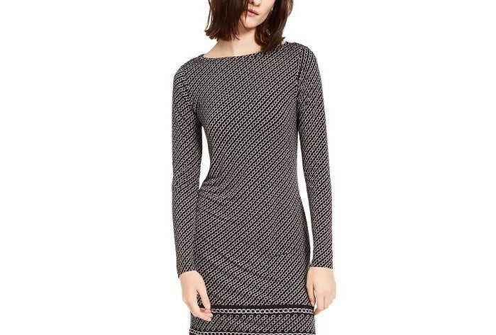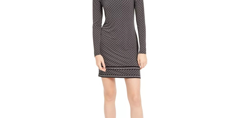 Michael Kors Women's Long-Sleeve Chain-Print Dress, Regular & Petite Sizes Gray Size Large