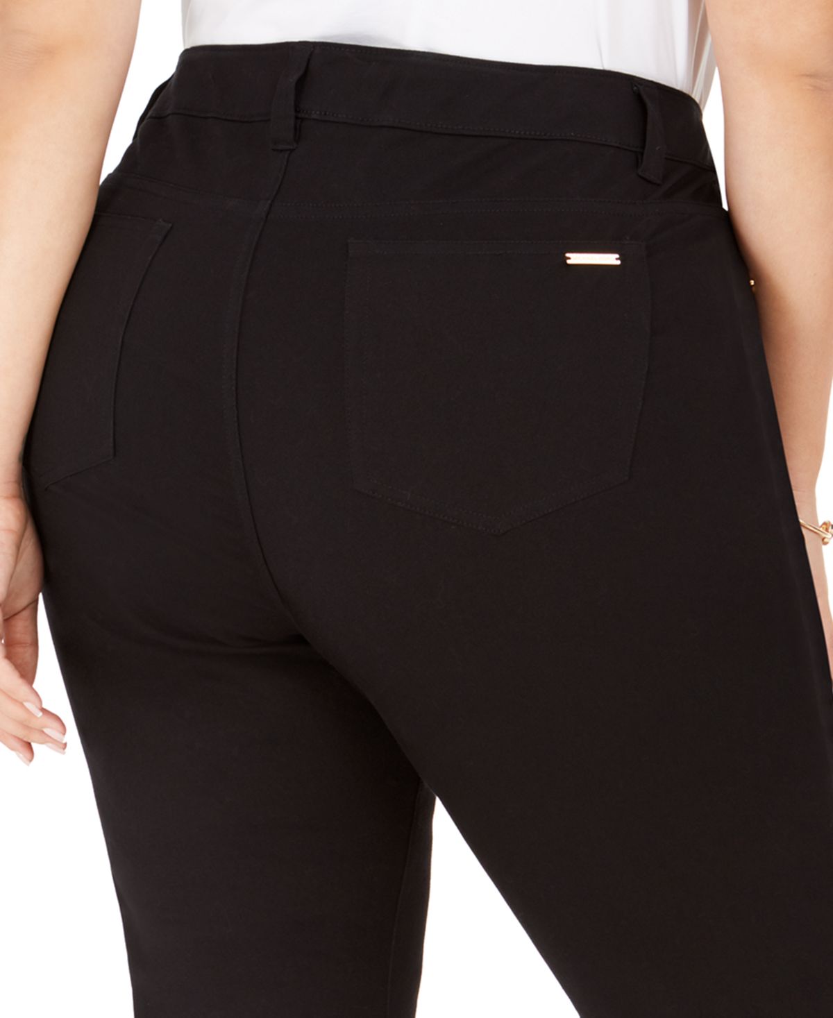 Michael Michael Kors' plus size pants are your new go-to with a sleek skinny leg that works to build a wide range of looks from casual to boardroom-chic.| Approx. inseam; 29| Mid rise| Zipper and button closure at front; belt loops | Cotton/elastane| Machine washable| Imported