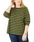 Michael Kors Women's Plus Striped Crewneck T-Shirt Green Size 0X