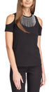 Michael Kors Women's Rhinestone Cold Shoulder Top Black Size X-Large