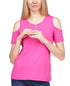 Michael Kors Women's Zip Neck Cold Shoulder Top Pink Size X-Large