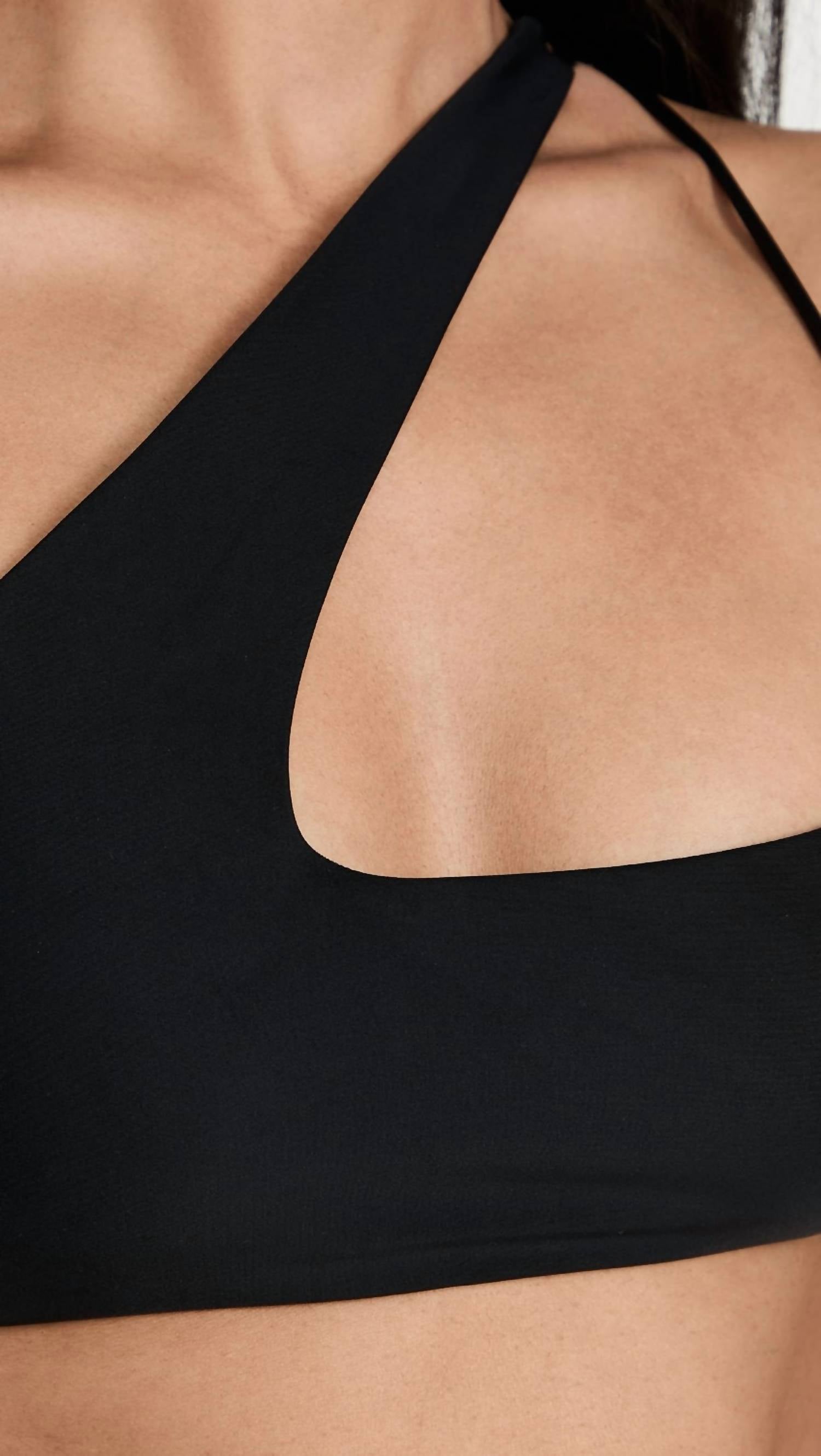 This cute and flattering swimsuit is perfect for making a splash at the pool, lounging on sun-kissed beaches, and staying stylish throughout the upcoming summer season. Elevate your beach attire with the Queensland 2 Bikini Top by MIKOH, a daring one-shoulder swim top in Noir Solnor that transforms any classic black bikini ensemble. Expertly crafted from a sustainable blend of 78% recycled nylon and 22% elastane, it offers cheeky coverage while ensuring a comfortable fit. Perfect for a summer beach day, this chic swim top features a strappy design that adds a touch of intrigue. Care for your bikini by hand washing it cold and laying it flat to dry. Model is 5'10" and wearing a size small; take your true size or size up if between sizes.