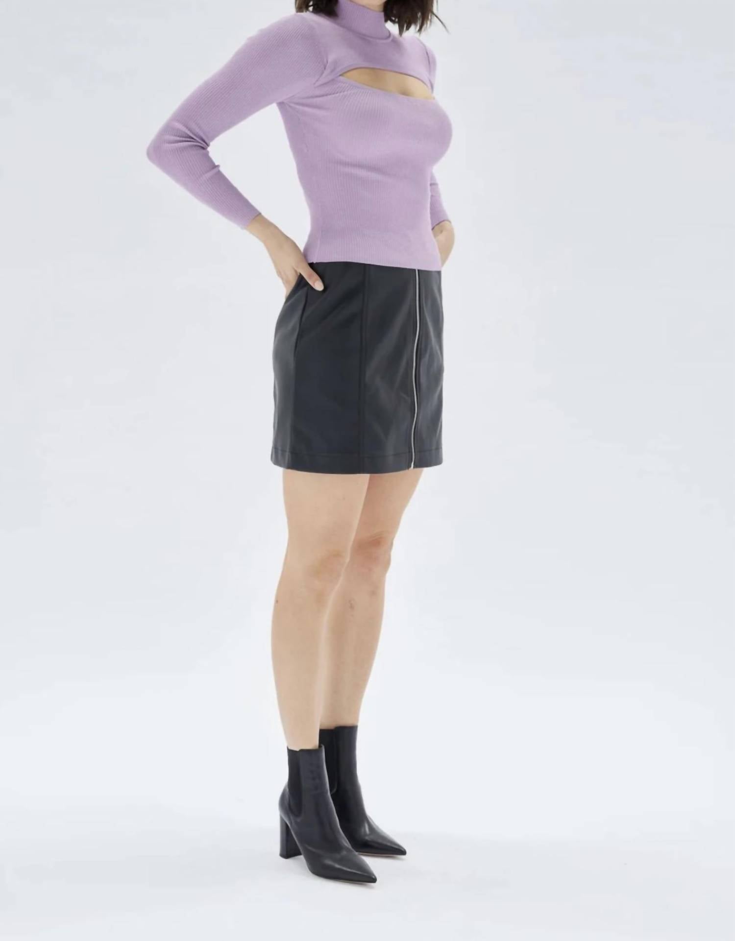The perfect crop top for those warmer weather days. Elevate your wardrobe with the Tinghir Cut Out Knit Top by MINKPINK, a chic piece in a lovely lilac hue. This women's top features a stylish mockneck with an elegant cut-out detail and long sleeves for a sophisticated look. Made from stretchy viscose material, it offers a comfortable fit whether worn tucked in or out. With a solid pattern and pull-on closure, this top is as practical as it is fashionable. Care: Hand wash.