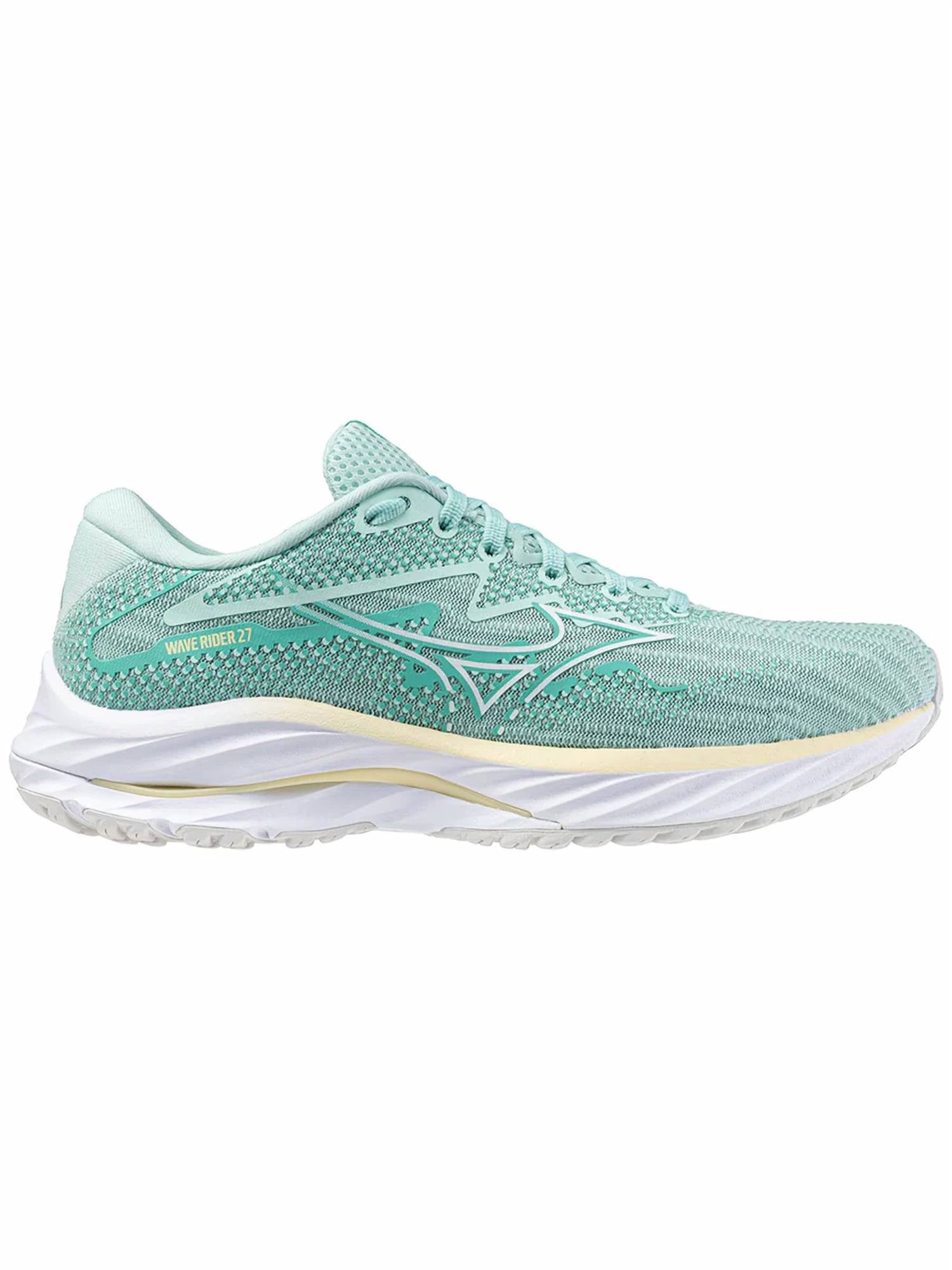 When fashion meets function. Neutral | Medium Cushion | 12mm Heel Drop Springload your runs with the Mizuno Wave Rider 27. The Mizuno Wave Rider is a consistent and reliable daily trainer, making it one of the best running shoes whether you’re running a marathon or your first 5k. The Wave Rider 27 brings a new level of responsiveness to each step and the smoothest ride possible thanks to its bio-based wave plate and Mizuno ENERZY foam. The MIZUNO WAVE® plate disperses energy when your foot hits the pavement to make landings softer while the ENERZY foam gives you plenty of cushion and bounce. The upper is made with smooth air mesh material and a gusseted that has plenty of stretch for extra comfort, while a redesigned heel counter gives you a closer fit and great lockdown. Plus, the X10 outsole is a carbon rubber that makes the Wave Rider durable enough to be your workhorse running shoe.