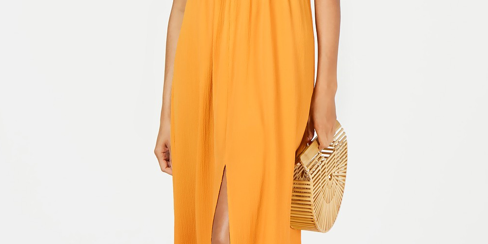 Monteau Women's Petite Split-Hem A-Line Maxi Dress Yellow Size Petite X-Large