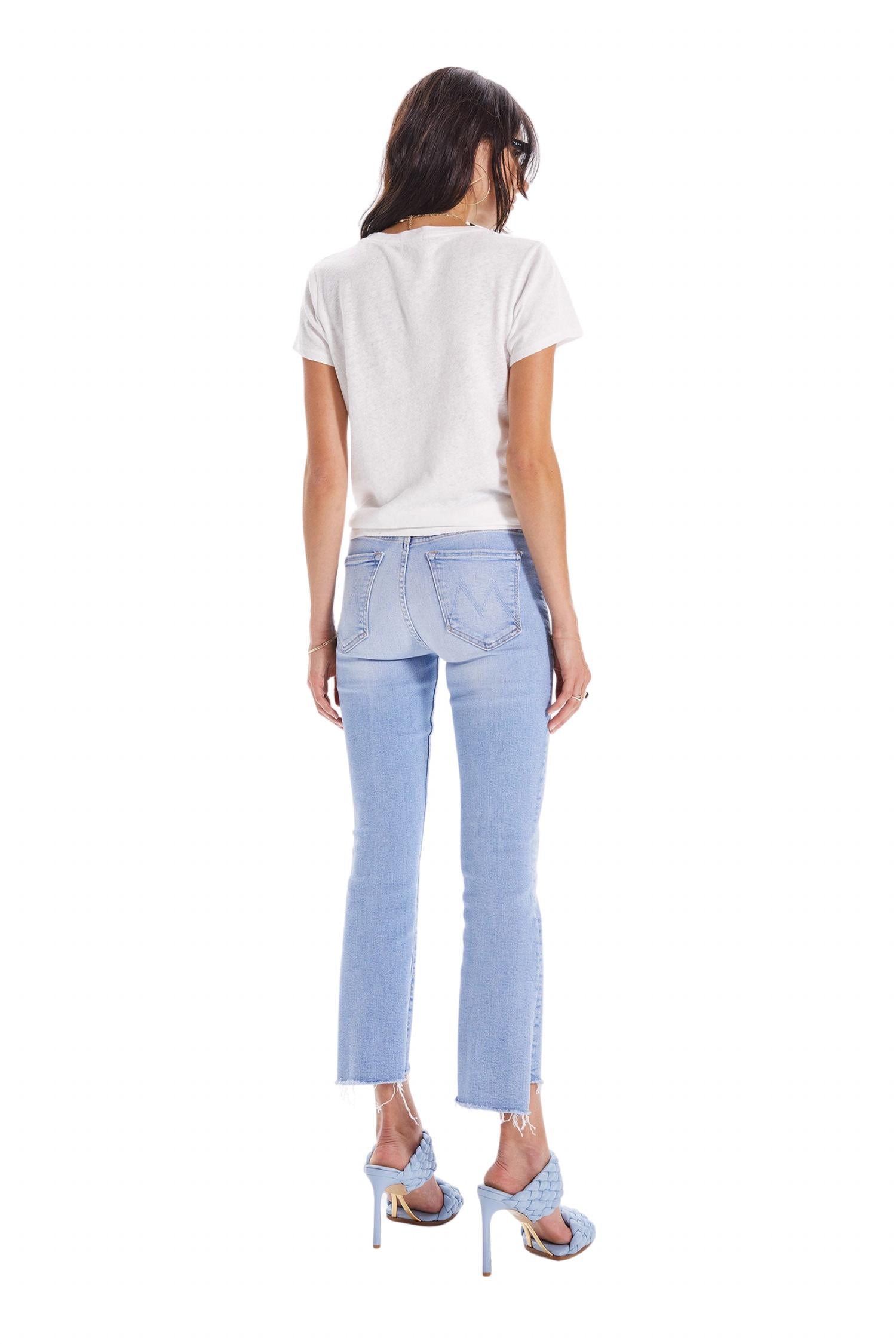 Stay on-trend and showcase your impeccable taste with these adaptable and stylish cropped pants. The perfect length to wear with your favorite mules. You'll love the fit! Discover the Mother Insider Crop Step Fray Jean, a limited edition piece in a solid, light wash, ideal for streetwear trends this Spring. Featuring a relaxed fit, these mid-rise jeans boast a 10" rise, 26" inseam, and a 15" leg opening for comfortable yet chic wear. Crafted in the USA with a cotton blend composition of 78% cotton, 16% modal, 4% polyester, and 2% elastane, these jeans offer both style and durability. Closure: Zipper fly. Care: Machine wash. Perfect for vacations and everyday wear, complete with practical pockets.