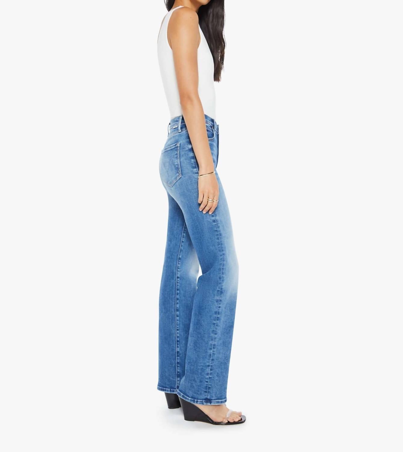 This straightleg pant is both stylish and comfortable. Did we mention the fit is perfection? Introducing the Kick It-bitchin' Straight Leg Jeans by Mother, a must-have for any streetwear enthusiast. These high-rise jeans feature a flattering 10.5" rise and a 32" inseam, tailored in a regular fit with a straight leg style. Composed of a comfortable cotton blend with 78% cotton, these jeans are designed with whiskering and fading at the knee, adding a touch of character. Closure: Zip closure. Care: Machine wash, tumble dry. These jeans are crafted for women and come in a versatile medium blue wash, perfect for concerts and summer occasions.