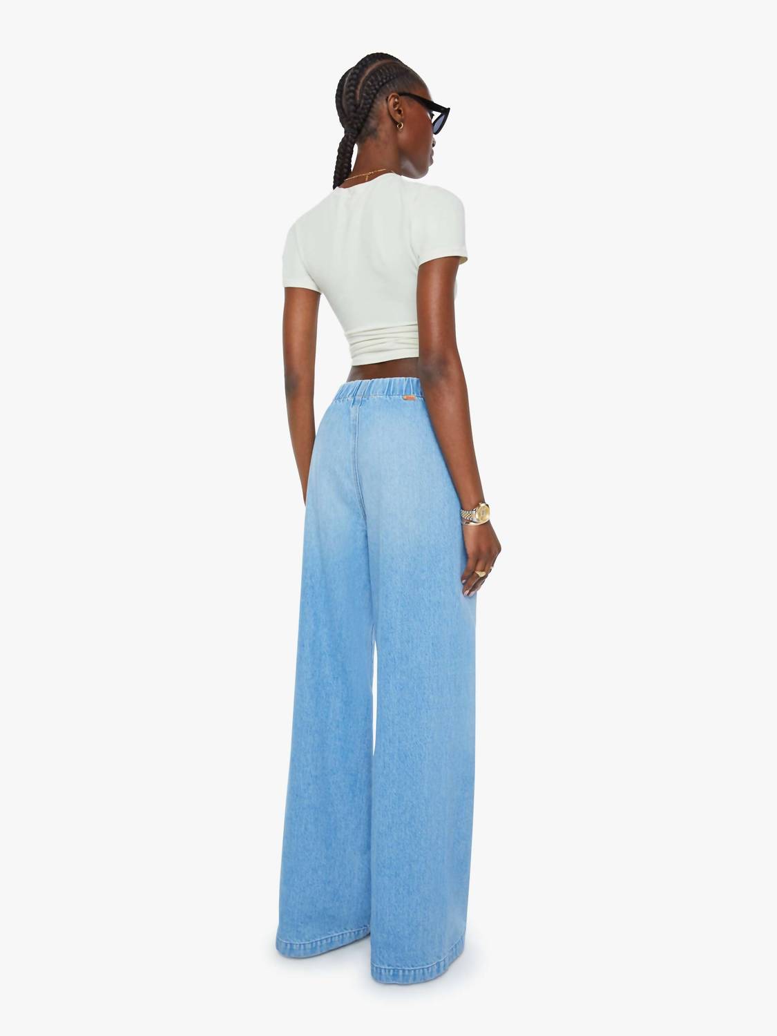 Pair these wide leg jeans with mules, slides or your favorite strappy sandals. Discover the Kitchen Drawer Skimp Jean by Mother, featuring a relaxed fit and wide leg for a statement look. Crafted from 100% cotton in the USA, these jeans boast a mid-rise with a 12" rise and a 32" inseam, all accentuated by a vibrant pop art-inspired poppy print in a light wash. Designed with practicality in mind, they include slit pockets and a convenient pull-on style with a velcro waistband. For care, simply machine wash and tumble dry.