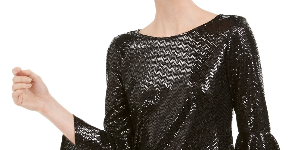 MSK Women's Mirror-Dot Bell-Sleeve Top Black Size X-Large