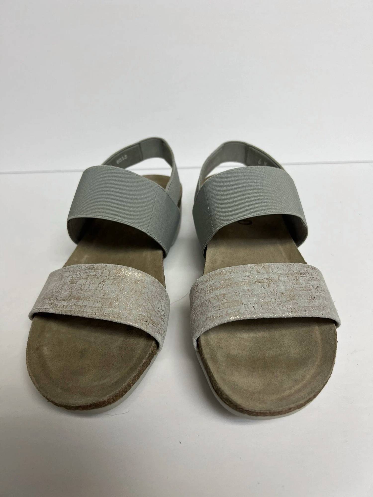 Classicly cute and all-day-wearable. We love this sandal. Step into summer elegance with the Women's Pisces Sandal by Munro, crafted from silver leather for a sophisticated look. This vacation-ready sandal, made in the US, boasts an open toe and flat heel design for ultimate comfort. The shock-absorbent, flexible, and slip-resistant features are enhanced by the cork/latex combination footbed and XL Ultralite outsole. Perfect for medium-width feet, these sandals ensure every step is secure and stylish.