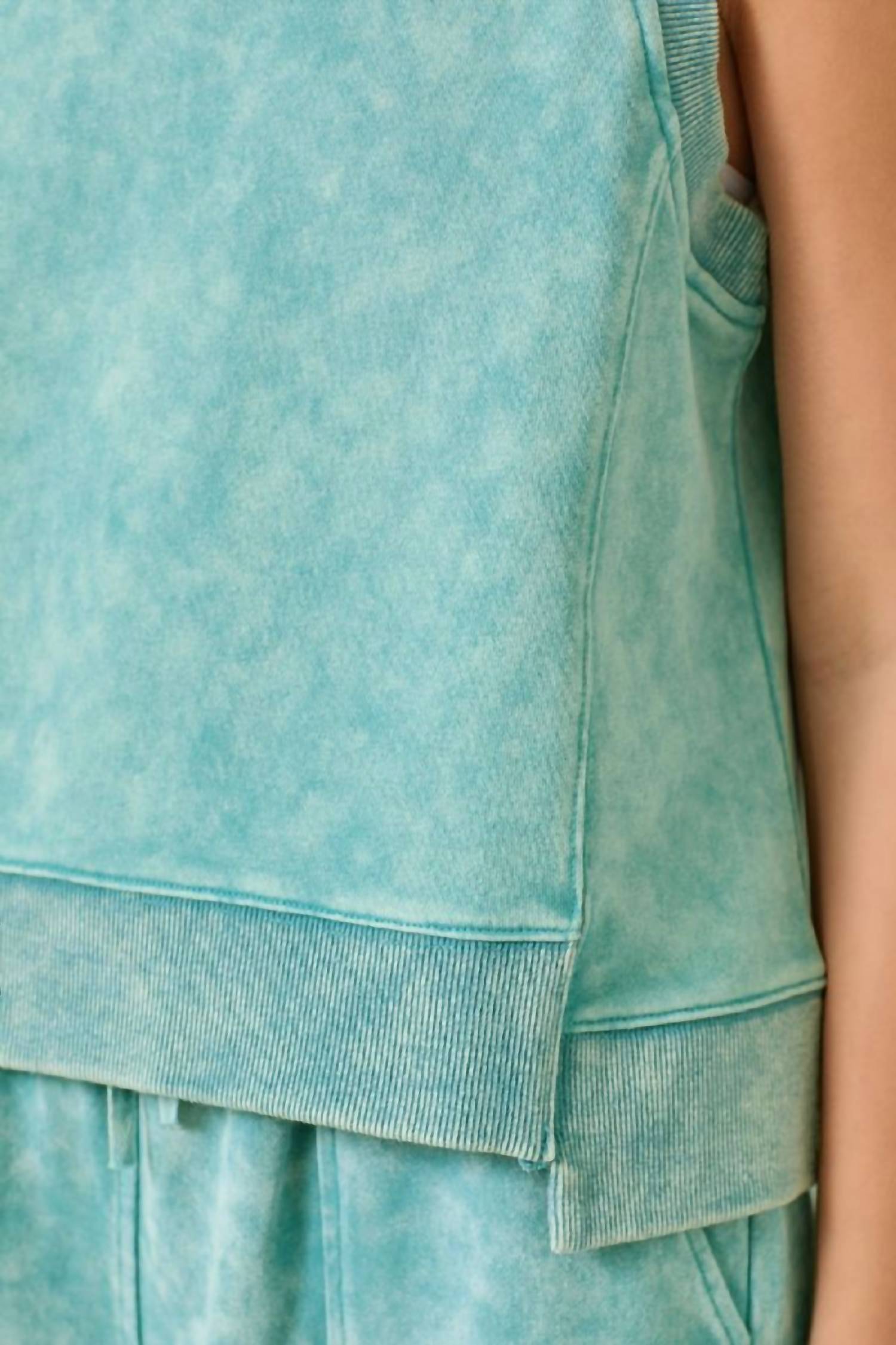 With so many ways to wear this, you'll want this muscle tee in every color. The Bowie Sleeveless Terry Top by Mystree is a stylish addition to any warm-weather wardrobe, with its relaxed fit and ribbed detail offering a nod to '90s fashion. This sleeveless top, perfect for summer vacations, features a textured crewneck design and is crafted from a comfortable cotton blend. With a pull-on closure, it pairs effortlessly with the Bowie Terry Shorts for a complete athleisure set. Care is simple, requiring only a machine wash to maintain its fresh Washed Kingfisher and Sea Green hues. Available in sizes with bust measurements of 38" (S), 40" (M), and 42" (L), and lengths of 21" (S), 21.5" (M), and 22" (L).