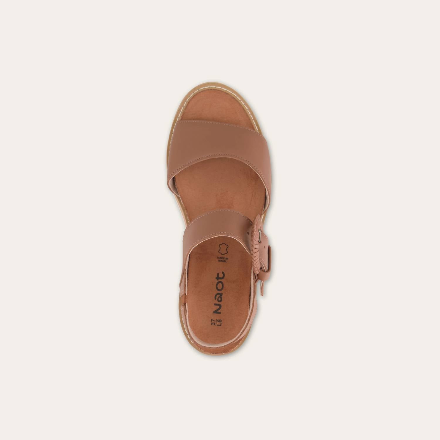 The perfect variation on one of our favorite trends this season.Caramel leather with a camel sole. Naot's anatomic cork and latex footbed, delicately wrapped in pampering suede. Fit: true to size. Sole material: EVA. Heel height: 2.2". Width: medium to wide. Platform height: 1.5".