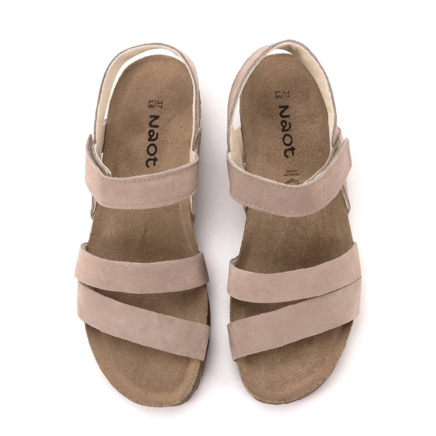 Classicly cute and all-day-wearable. We love this sandal.This sandal features three supportive straps, a hook & loop strap at the instep, and a backstrap for enhanced stability. It includes Naot's anatomic cork & latex footbed for superior comfort. The EVA sole material offers lightweight support. The heel height is 1.5 inches, and the platform height is 0.5 inches. It is true to size and should be spot cleaned.