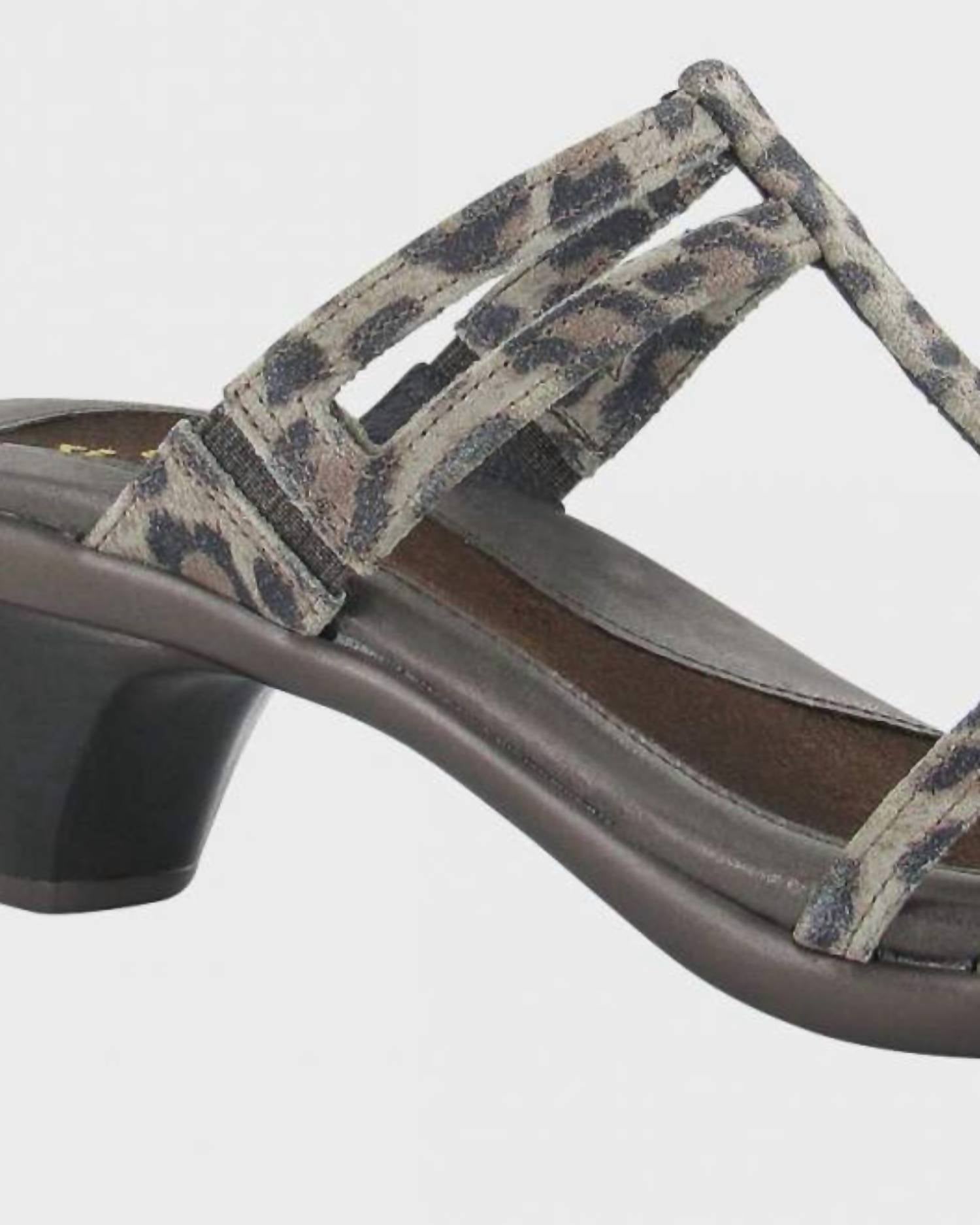Don't be deceived, these heels are comfy as can be. Step into summer style with the Women's Loop Cheetah Sandal by NAOT, offering vintage charm ideal for a dinner party. Crafted with leather straps in a chic black, these sandals feature an open toe and block heel for effortless elegance. The 2" heel height is stylish yet comfortable, thanks to Naot's anatomic cork and latex footbed that molds over time. The Avantgarde Collection's TPR sole offers stability and the look of a high heel without the discomfort. Designed for adjustability, this sandal promises a secure fit for every step.