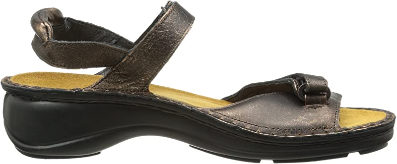 100% Leather| Imported| Synthetic sole| Heel measures approximately 1.5"| Platform measures approximately 0.75"| The rosemary is a fully adjustable blackstrap sandal. This sandal has a hook and loop closure at both the instep and front. The blackstrap is padded for additional comfort.| This sandal has a hook and loop closure at the instep for adjustability and a unique crisscross strap front to help hold the foot in place. NAOT's removable; anatomic cork and latex footbed is wrapped in pampering suede and molds to the foot with wear.