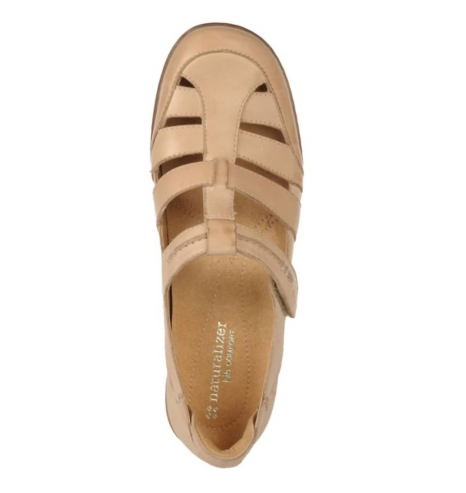 Introducing the Women's Malta Fisherman Sandal by Naturalizer, an exquisite addition to your summer wardrobe. Featuring a round toe and flat heel style, this sandal is crafted from 100% leather in a chic Moonstone hue, ensuring both luxury and durability. The 1-inch heel and durable EVA outsole provide comfort and reliability for any occasion. With a versatile design, this sandal effortlessly transitions from casual outings to professional settings.