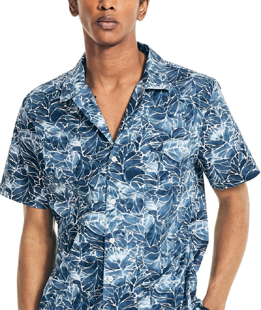Nautica Men's Stretch Cotton Floral Print Short Sleeve Shirt Blue Size Large