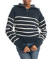 Designed with a super cozy cardigan stitched relaxed neck| this striped quarter zip sweater is finished with a comfortable ribbed hem and cuffs