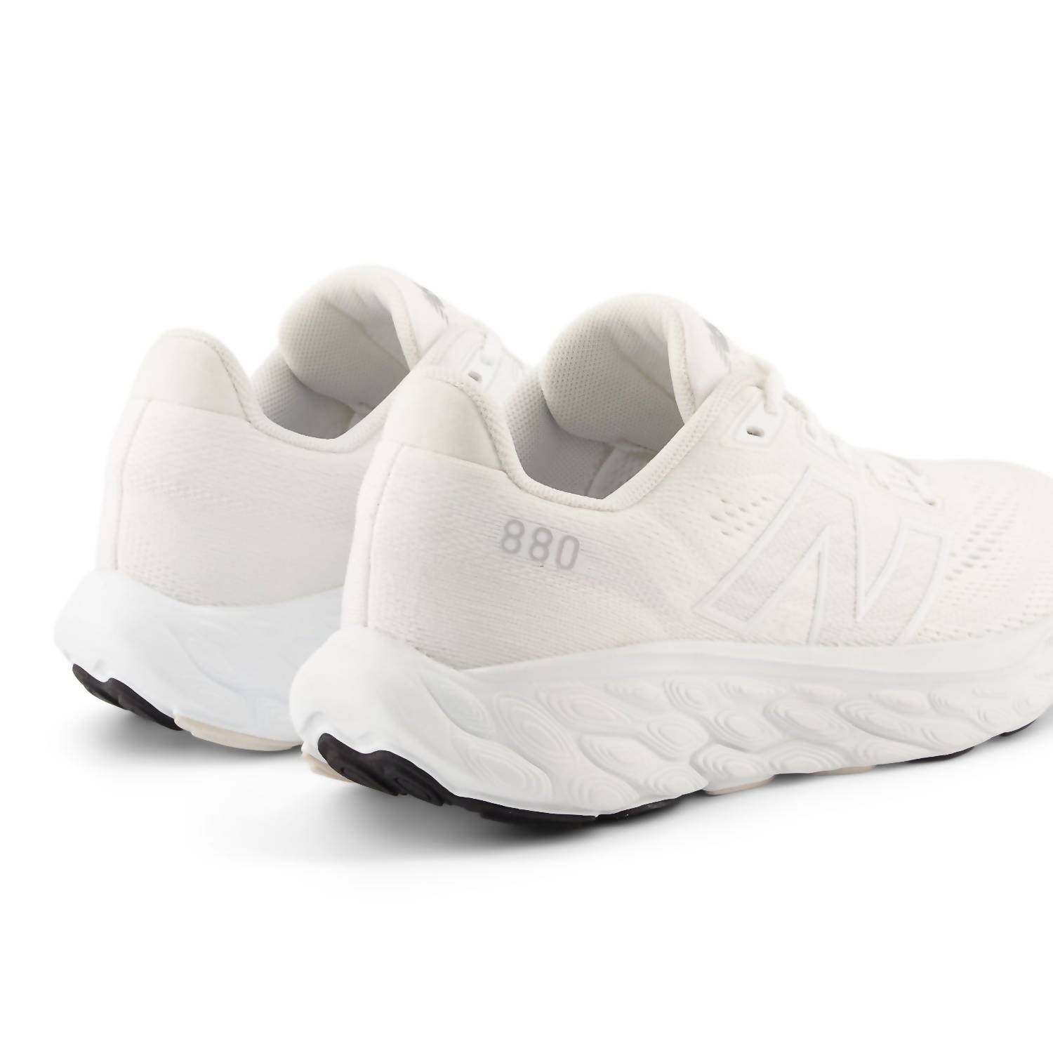 Introducing the Women's Fresh Foam 880v14 Running Shoes by New Balance, designed in a sleek white and grey colorway for women who seek exceptional comfort and support. These athletic shoes feature a round toe and medium shoe width, making them perfect for daily runs without requiring extra stability. Weighing just 209 grams (7.4 oz), each shoe incorporates Fresh Foam X midsole foam with approximately 3% bio-based content, promising a remarkably cushioned experience. Ideal for neutral runners, these shoes prioritize reliability and performance.