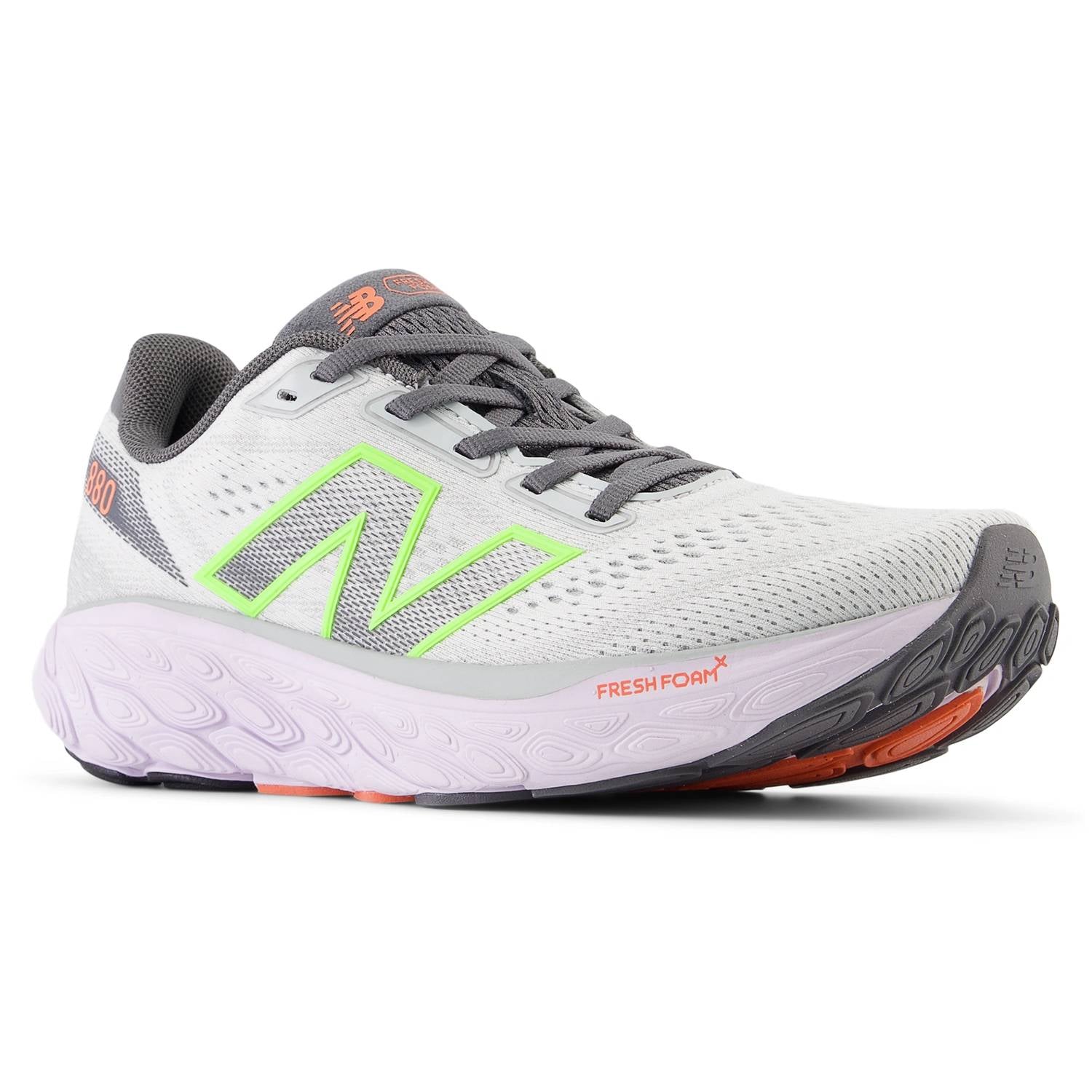 Introducing the Women's Fresh Foam X 880v14 Running Shoes by New Balance, designed for optimal comfort and style in grey. These medium-width shoes feature New Balance's signature Fresh Foam X midsole with approximately 3% bio-based content, offering superior cushioning. The shoes are APMA Seal of Acceptance recipients, endorsing their quality and effectiveness for daily use. With a heel-to-toe offset of 8mm and weighing just 7.4oz, these athletic shoes are perfect for summer fitness and workout sessions.