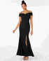 Approx. 52-1/4 long from center back to hem. Length is based on size 4 and varies 1/4 between sizes|Sweetheart neck with off-the-shoulder sleeves and spaghetti straps; Gown silhouette|Hidden back zipper with hook-and-eye closure|Side leg slit; padded cups|Unlined