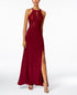 Nightway Women's Petite LaceTrim Illusion Halter Gown Wine Size 8P