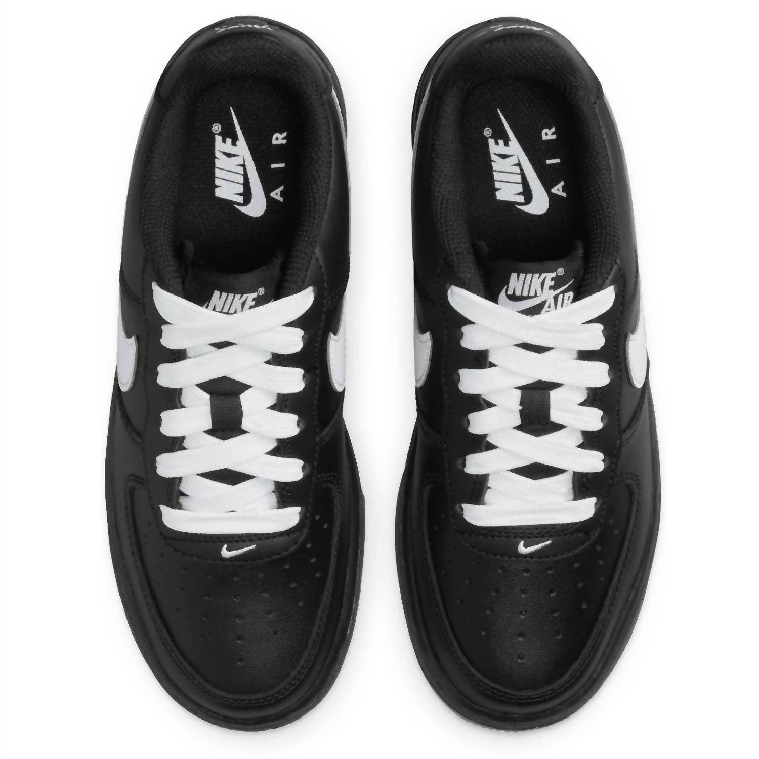 Introducing the Kids Air Force 1 Lv8 by Nike, a stylish sneaker perfect for streetwear enthusiasts. Crafted in sleek black leather, these sneakers are designed for big kids who love to combine comfort with fashion. Featuring a medium shoe width and a flat heel for easy all-day wear, these shoes make an excellent choice for summer travel. The round toe design ensures a comfortable fit while the classic colorway makes them ideal for a Fourth of July outing.