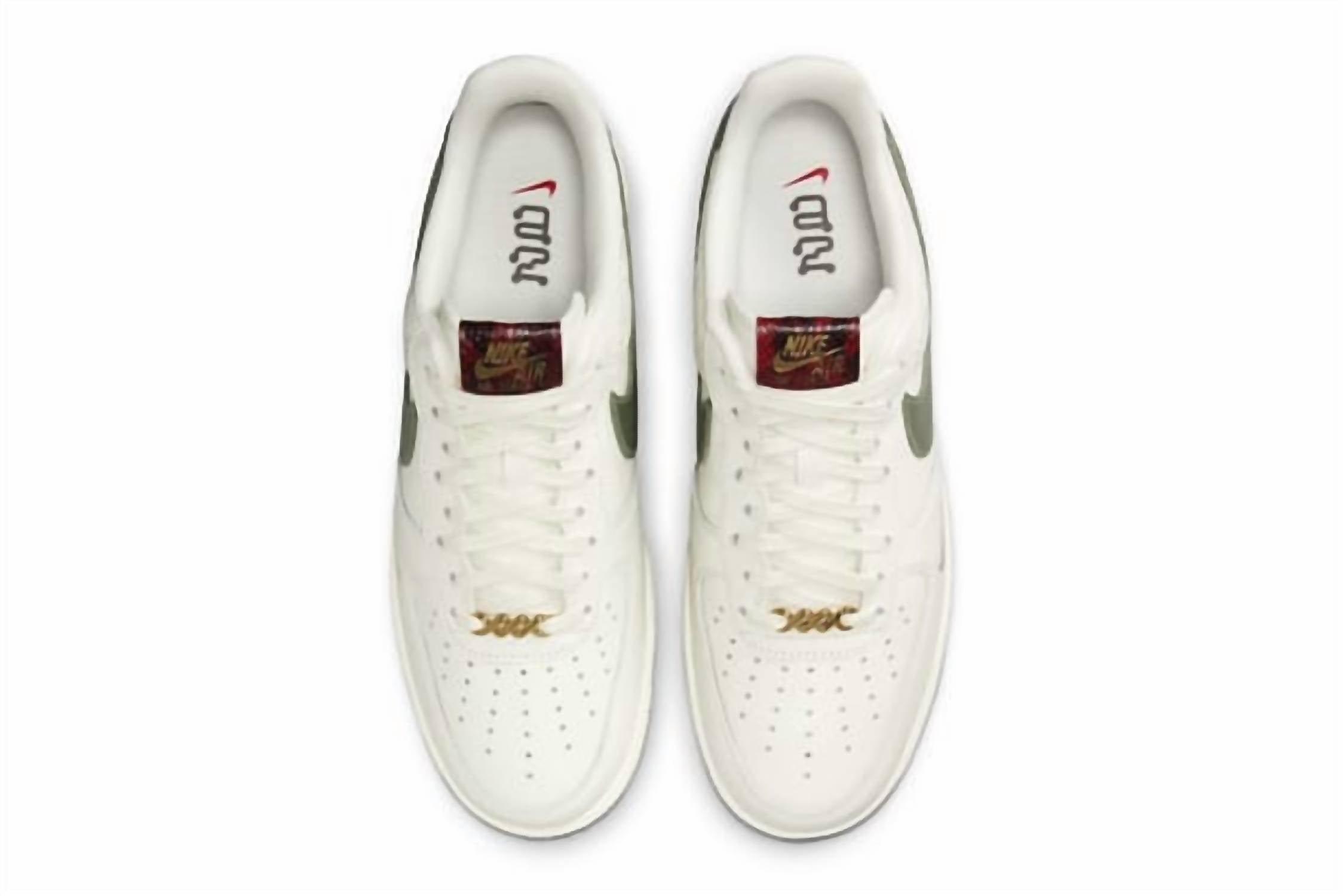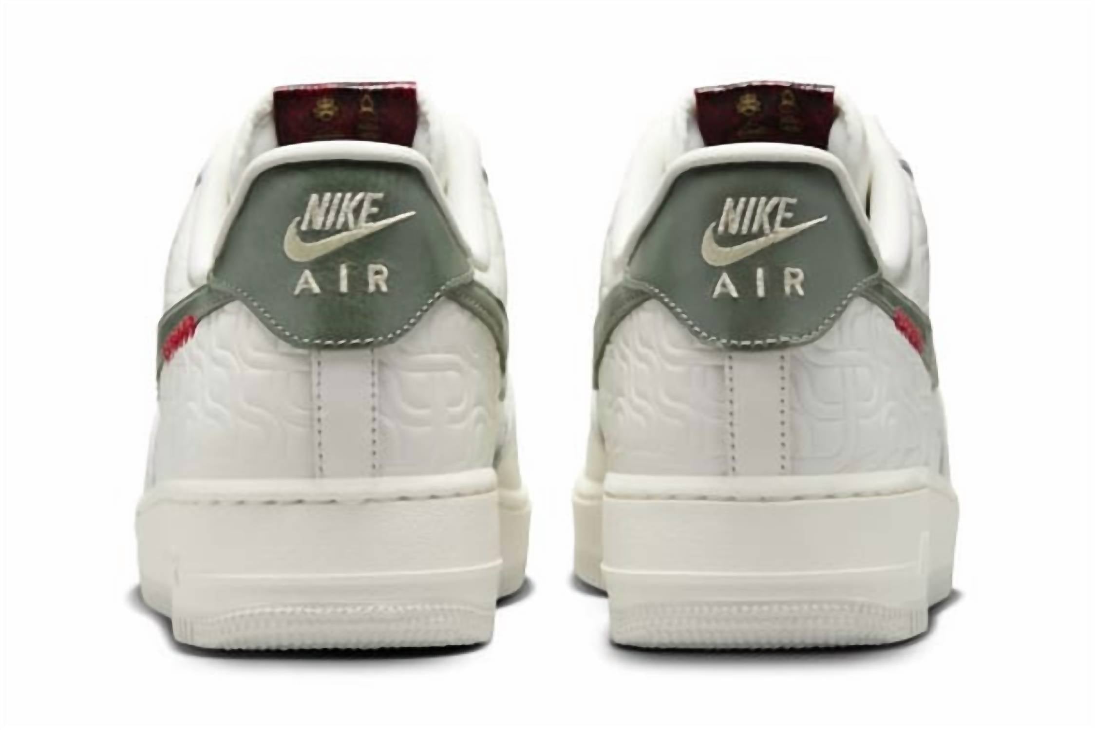 Elevate your style with the Men's Air Force 1 ’07 Low Sneakers by Nike, celebrating the Lunar New Year with a unique snake-inspired design. Crafted from genuine leather, the upper features a breathable perforated toe box, perfect for all-day comfort. Nike Air cushioning ensures lightweight comfort, while the durable rubber sole boasts a full cupsole stitch. Ideal for a holiday party this spring, these sneakers are a timeless choice for any wardrobe.