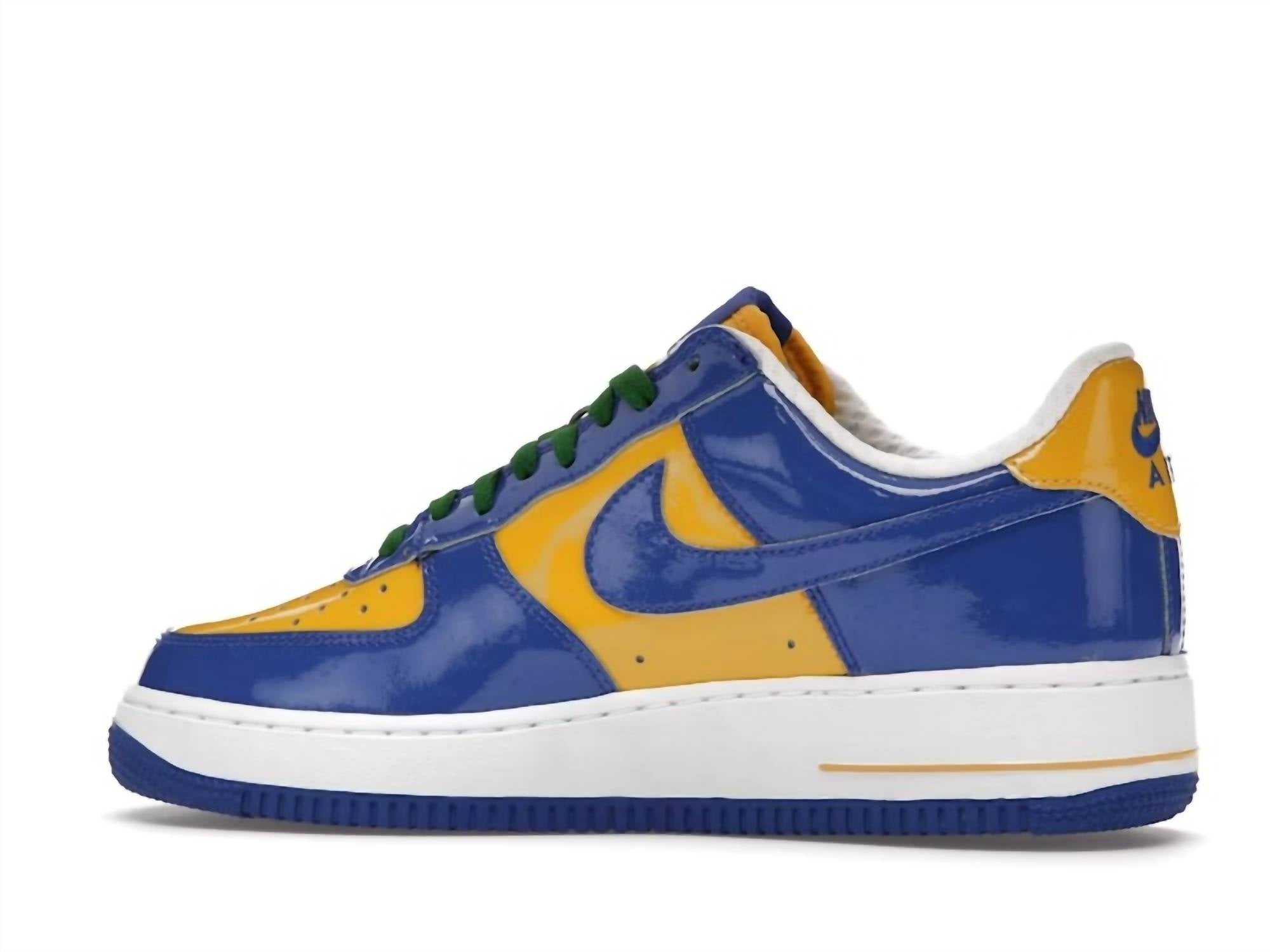 Step up your sneaker game with the Men's Air Force 1 Premium Brazil World Cup Limited Edition by NIKE. These sneakers boast a vibrant Varsity Royal and Maize patent leather upper that mirrors Brazil's iconic soccer jersey, complete with Classic Green laces. They feature a round toe shape, making them as comfortable as they are stylish. Perfect for adult men looking to add a splash of color to their footwear collection.