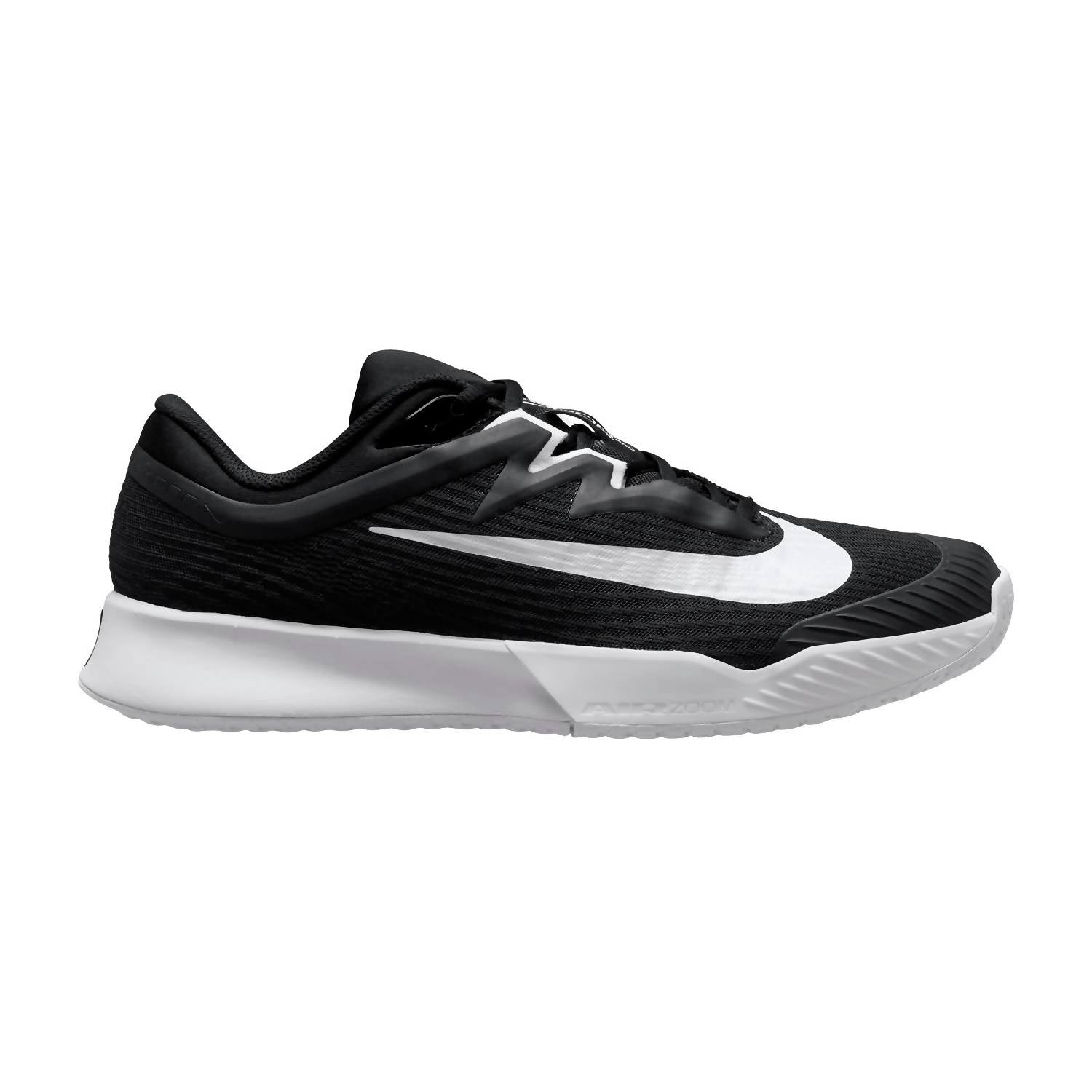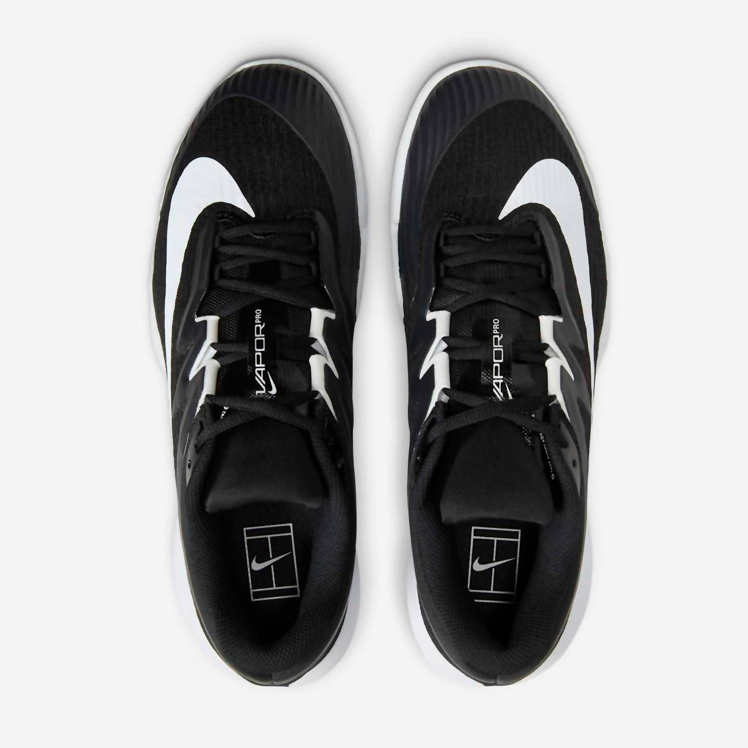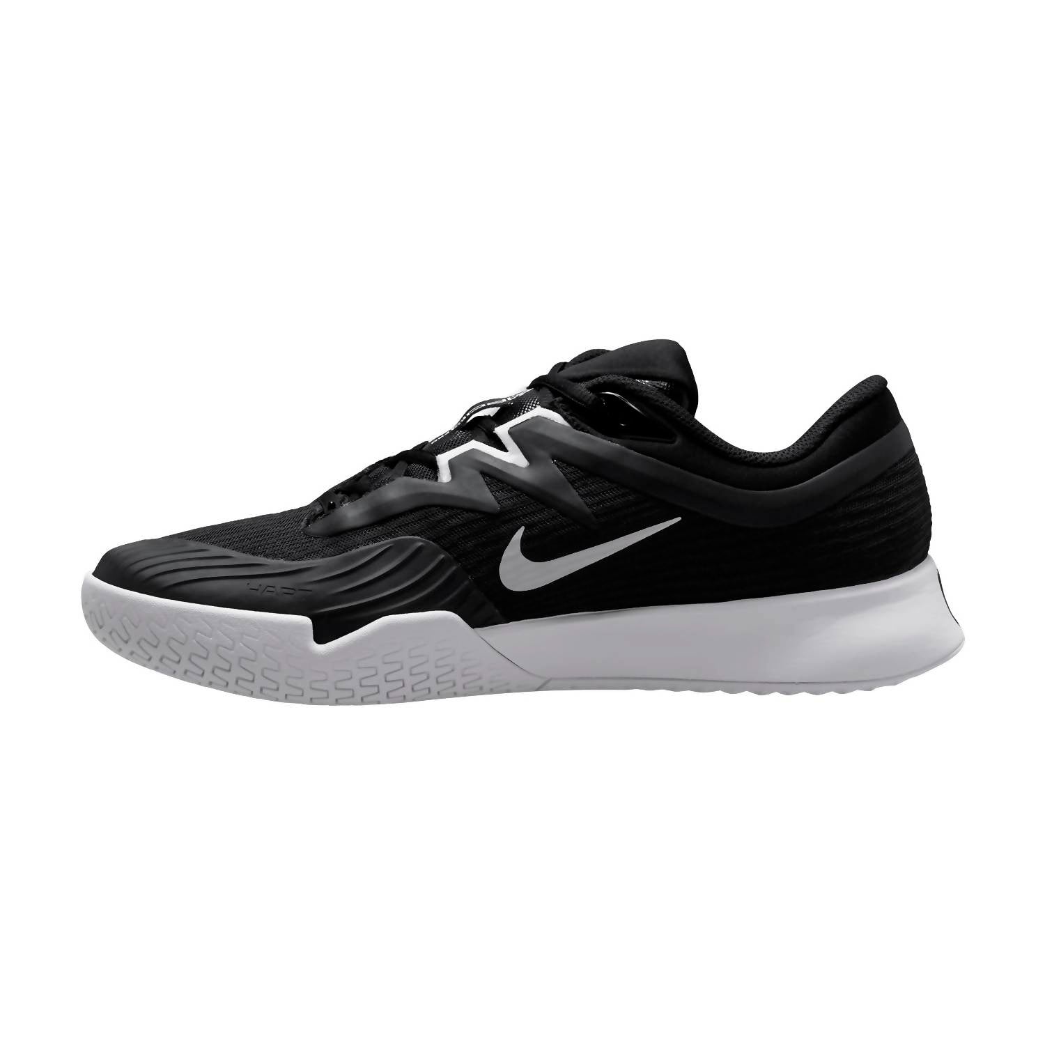 Enhance your game with the Men's Zoom Vapor Pro 3 Hard Court Tennis Shoes by Nike, crafted for speed and lightness. Featuring a breathable mesh upper with full-length synthetic rubber inserts, these shoes ensure a secure fit. The responsive foam midsole, complemented by a smaller Air Zoom unit, offers enhanced flexibility, while the reinforced toe cap with HART rubber provides durability during quick maneuvers. Designed in a sleek Black/White colorway, these shoes are the ultimate choice for male tennis players aiming to dominate hard courts.