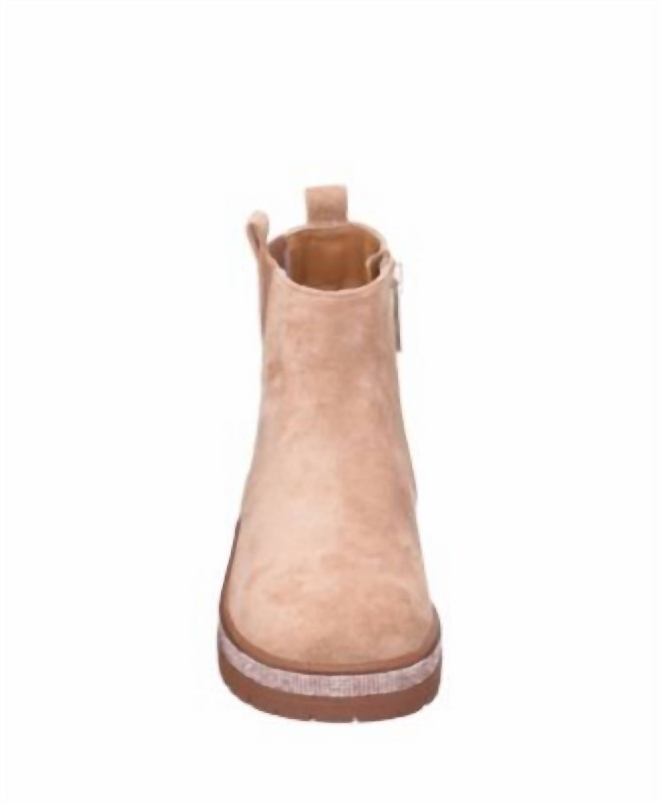 Introducing the Kid's Evan Boot by Nina, a charming choice for little girls in a versatile tan hue. Crafted from soft suede, these boots offer both style and comfort for everyday wear. They feature a round toe shape and a medium shoe width, making them easy to pair with any outfit. These adorable boots are designed with a low heel height, perfect for active little feet.