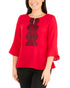 NY Collection Women's 3/4 Bell Sleeve Peplum Top Red Size Petite Large