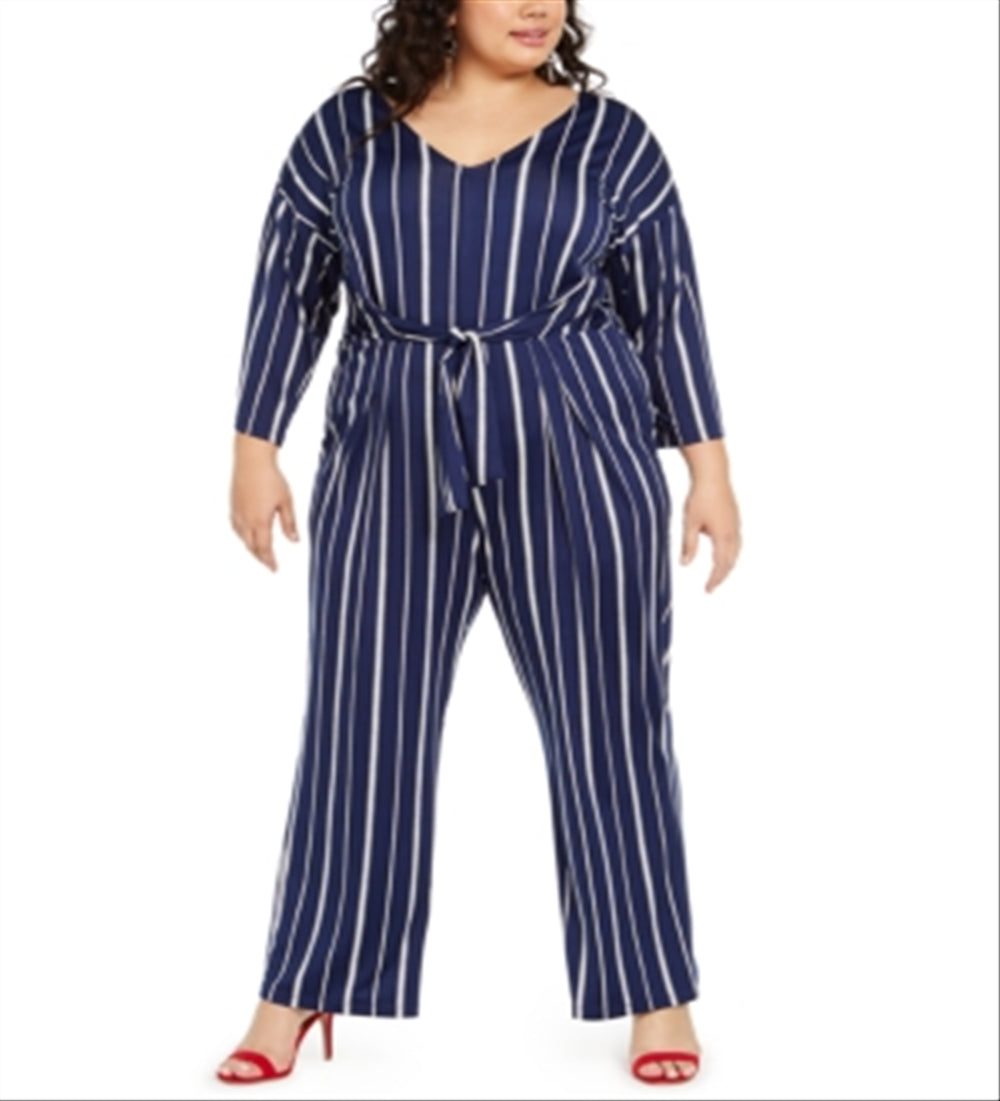 NY Collection make a chic outfit a snap with this plus size jumpsuit styled with a flattering tie front and a gaucho fit for flowing coverage.| Approx. inseam; 23-1/2| Rise; approx. 13; leg opening; approx. 25| V-neck; button closure at keyhole back| Tie detail at front waist| Drop-shoulder 3/4-sleeves