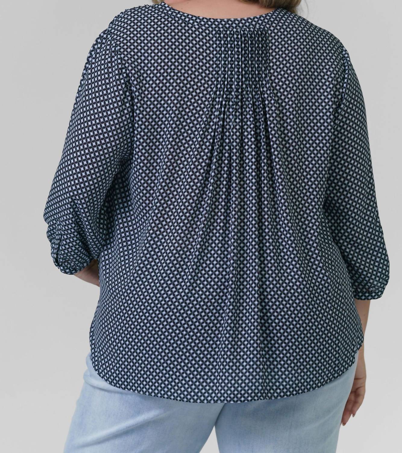 A versatile blouse that works from desk to dinner! Discover the NYDJ Pintuck Blouse, a chic choice in the Shannon Gardens pattern, tailored for plus-size women. This blouse features a billowy three-quarter sleeve design and a split round neckline with a covered placket and button closures. Crafted from sustainable polyester fiber, it's made entirely from post-consumer plastic waste, reducing environmental impact. Ideal for pairing with denim, its sophisticated drape offers effortless elegance.