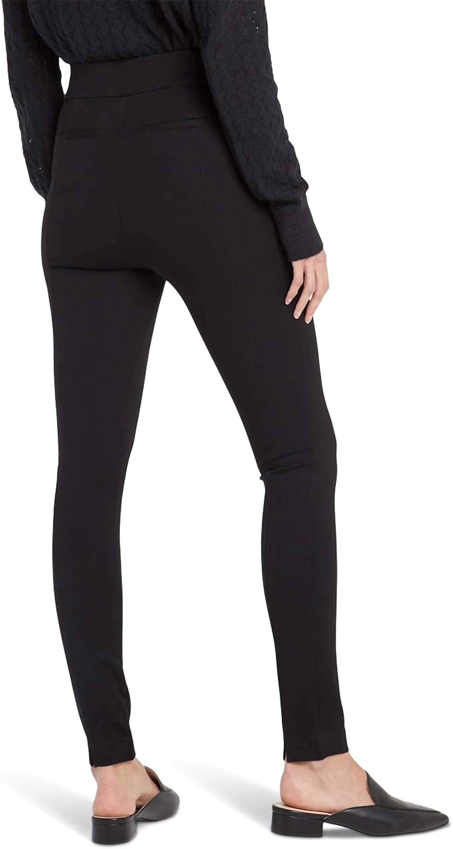 You'll be reaching for this best-selling legging all season long. Discover the NYDJ Pull On Back Slit Legging in solid black, a must-have for the modern wardrobe. These high-rise leggings feature a sleek skinny leg style and a 28" inseam, designed from a viscose blend for optimal stretch and comfort. Originating from China, they boast a pull-on waistband with faux fly, angled front welt pockets, and faux back welt pockets. For care, simply machine wash cold and line dry to maintain their cutting-edge fit and the flattering lift provided by the Lift Tuck® Technology.